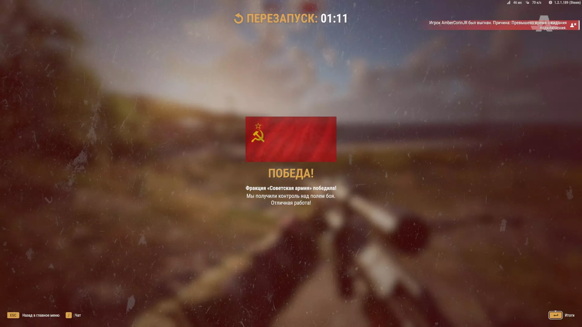 还好那个狡猾的流浪汉把子弹全打在了我的防弹背心上,我用贝瑞塔手枪结果了他,但运气可不是每次都这么好。 最可怕的是敌人闯入你的据点,而且通常会从侧翼包抄你。 在近距离战斗中,狙击步枪表现一般,但也不是所有阵营的手枪都好用。 我的建议是,仔细听声音,转动头部观察(虽然我自己不这么做)。有时要占据能够观察到自己侧翼的位置,并留意这些区域。重要的是,你身边要有植被,因为敌人靠近时可能会碰到灌木丛,从而暴露自己,这能给你留出采取应对措施的必要时间。正如我之前所说,使用苏联阵营时,要切换到SVD的瞄准镜。单靠PM(手枪)是不行的。好了,现在那些原本想强攻这座敌方基地的盟友,在来到被你清理干净的基地时,就会这么说了: