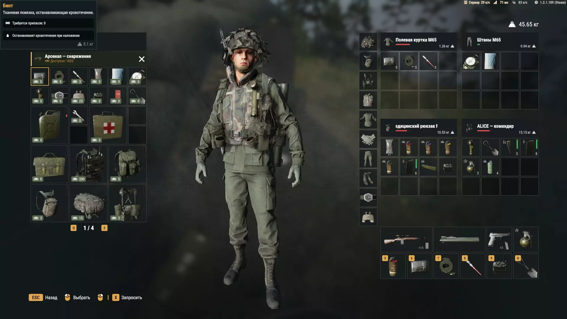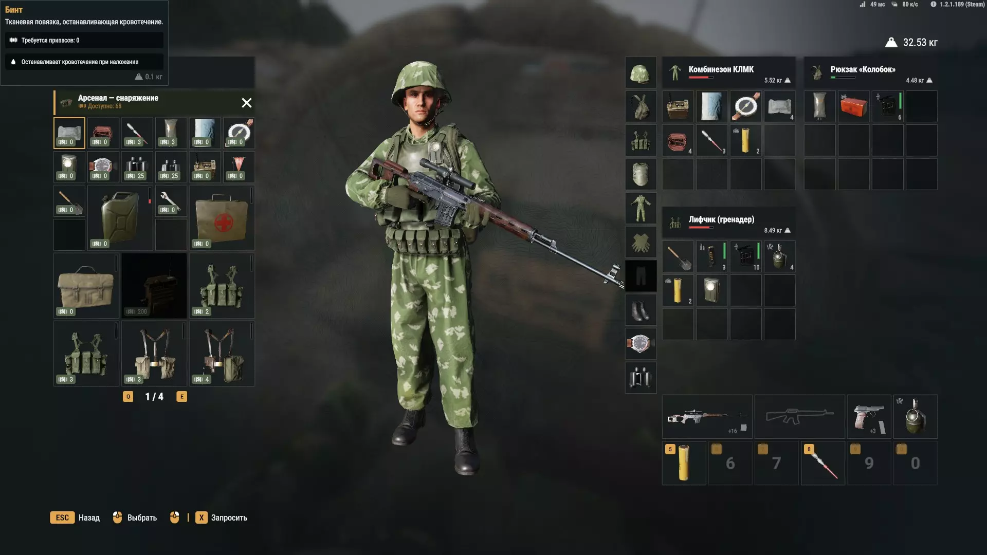 美国阵营: 这里的情况就像那个梗一样……令人失望。 选择不多,所以只能选:旧款M65作战服或战车乘员连体服(中士等级解锁)、带树叶伪装的头盔或带绿色罩的旧款头盔、手套,以及唯一还算让人满意的丛林靴。 不要选BDU作战服,除了头盔外,这套服装非常糟糕,无论是在灌木丛还是森林里都极其显眼。就连苏联的基础服装都比它好。一定要选择深色或淡绿色的防弹背心,因为它能防御带消音器的卡拉什尼科夫步枪(Калаш)和PM手枪,而且无论如何你都无法将负重控制在25公斤以内。 选择医疗兵背包,因为它是最不显眼且体积最小的,同时容量相当不错。 美国人有一个特色装备——彩色烟雾弹。我一次都没试过,但理论上它们应该能吸引更多注意力,如果你把它扔到某个地方,自己则躲到烟雾里或者其他方向,那么你活着逃脱的机会会更大,但这也不确定。 我的美国阵营键位设置: