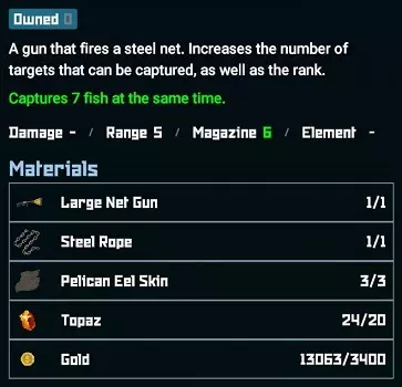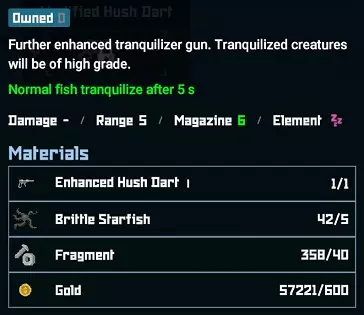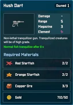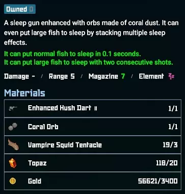 海藻农场6个槽位(1个初始槽位,5个槽位各需300贝币解锁) 作物 - 12贝币/种子 琼脂:生长时间1天 / 产量5 海蕴:生长时间1天+1(单位未明确) / 产量5 海带:生长时间1天 / 产量5 海葡萄:生长时间2天 / 产量5 海藻:生长时间2天 / 产量5 鱼类(注意事项) 部分生物只能在野外特定星级区域收集。 水母/河豚只能通过击杀、 tranquilize(麻醉)或网捕获得1星或3星品质。 “大型”生物如鲨鱼/鳐鱼/“大鱼”只能通过击杀后收获,或使用无人机运送。 需要注意的是,对于那些必须击杀后才能收获的生物,其尸体不会消失,除非你切换区域(即出现对话弹窗,而不仅仅是在不同深度之间游动)。因此,如果你想暂时避免额外的负重,可以先击杀生物,之后再回来收获。提示:你可以用一把钢制网枪一次捕获多条大型鱼类,比如金枪鱼,无人机一次使用就能将它们全部拖走。(一网捕获3条金枪鱼=太棒了!) 虾和海马在捕获时似乎表现异常,尽管它们都是三星级,但肉质数量却各不相同。 此外,所有不同种类的海马(除少数例外)似乎都会变成同一种肉。 鱼类(0-50米) (我还没有对这部分进行太多更新,因为我仍不确定表格中应该包含哪些内容。考虑到你通常是把鱼带回来做菜而不是直接卖掉,克/千克这个指标似乎没那么有用,所以我不知道是否应该包含它。)(关于生成组的说明:目前这只是我的理论/观察,即这些鱼会成组生成,与其他深度无关) 鱼的千克数