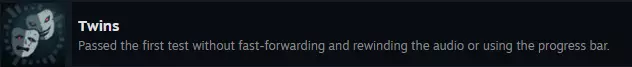俄语攻略:获取本体游戏及免费DLC的所有成就。注意,包含剧透 前言 要获取以下成就,必须完整通关每个关卡并观看记录,期间不得使用快进/快退按钮,也不得拖动进度条。可以暂停和继续。关于发表评论,我无法给出确切结论——有时这会影响成就的获取,有时则不会,所以我建议不要使用此功能,以免意外影响成就的解锁。