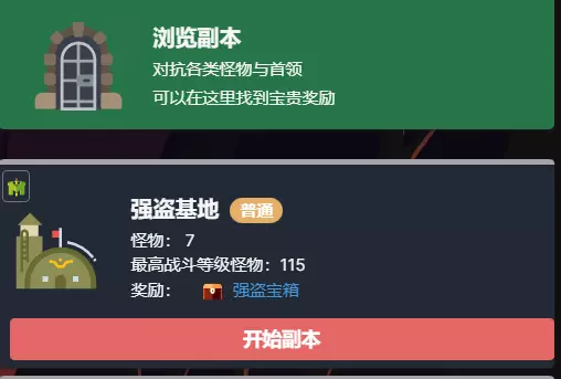 完成一组战斗副本【强盗基地】