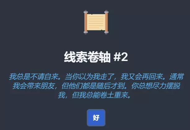 这个活动感觉相当不灵敏,跳不出来可以反复退出进入游戏试试。 我按这个办法做完了,有错误欢迎评论指出。 以及,我没做黑色防剧透,如果担心剧透就先自己尝试吧! 祝大家游戏愉快! 线索1 先去领取线索1