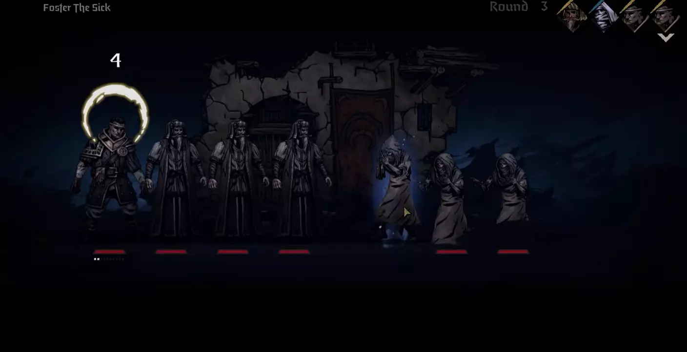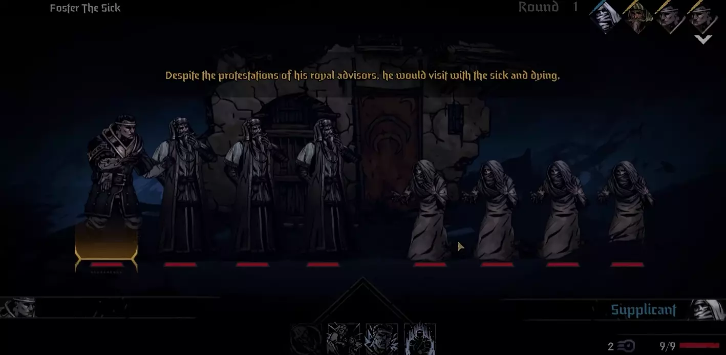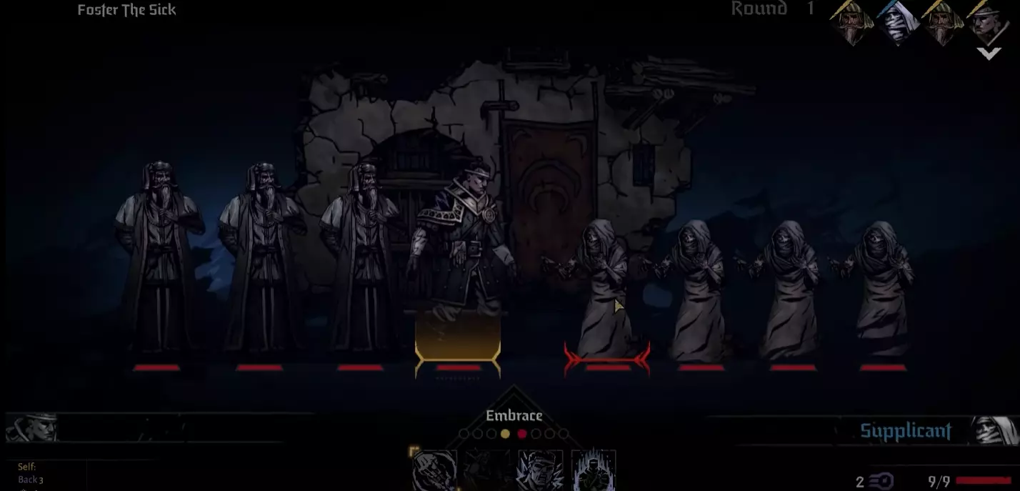 当我们的阵营达到1级后,可以对最近的麻风病人使用【拥抱】技能。使用后,他会从战场上消失,而我们的角色将再次被抛到最后一排。