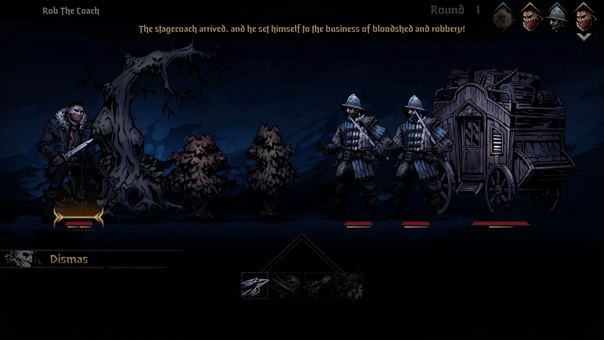 “他曾身患重病,食不果腹。绝望之下,他向一个无耻的恶徒献出了自己的专长。为了一笔预付的黄金,他再次被束缚在一项令人不齿的任务中。他填饱肚子,做好准备,为了最后一次抢劫。” 第四章:拦路抢劫 目标:抢劫马车。在这段记忆中,我们需要抢劫马车。你将再次独自对抗敌人守卫,这次只有两名守卫。要获胜,只需将马车的生命值降至0。这场战斗相当简单,不需要任何特殊的战术决策。