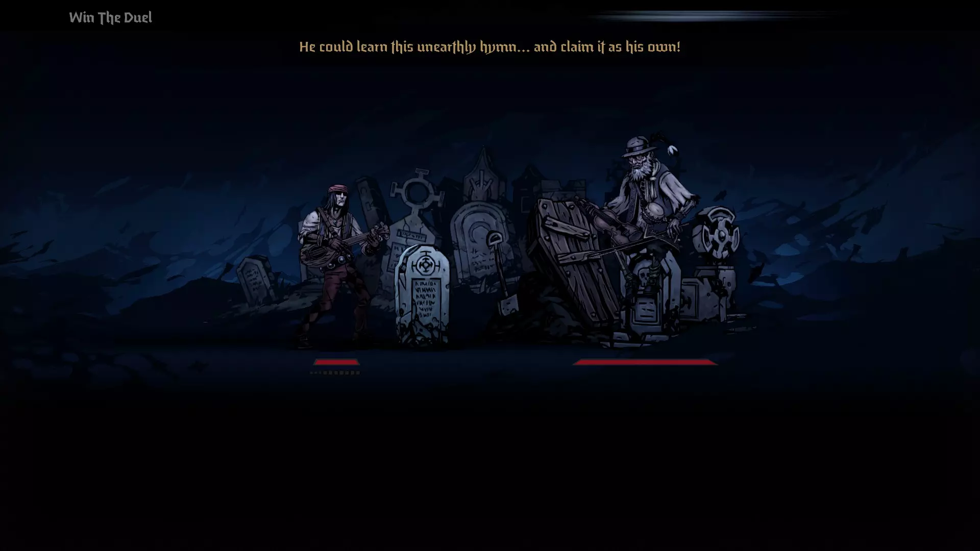他曾是个游手好闲、毫无抱负与目标的人,满足于在街角闲逛,无精打采地为路人卖艺。被人粗暴地从繁华的商业区赶走后,他在城市被遗忘的角落徘徊。一阵令人沉醉的旋律从附近墓地的围墙那边飘来,他昏昏沉沉地在墓碑间跌跌撞撞,寻找着那个演奏者…… 第二章:夜之乐章 目标:赢得决斗 小丑的回忆故事是整个游戏中最特别也最有趣的故事之一。在这段回忆中,你将与一位小提琴手共同创作一首曲子。