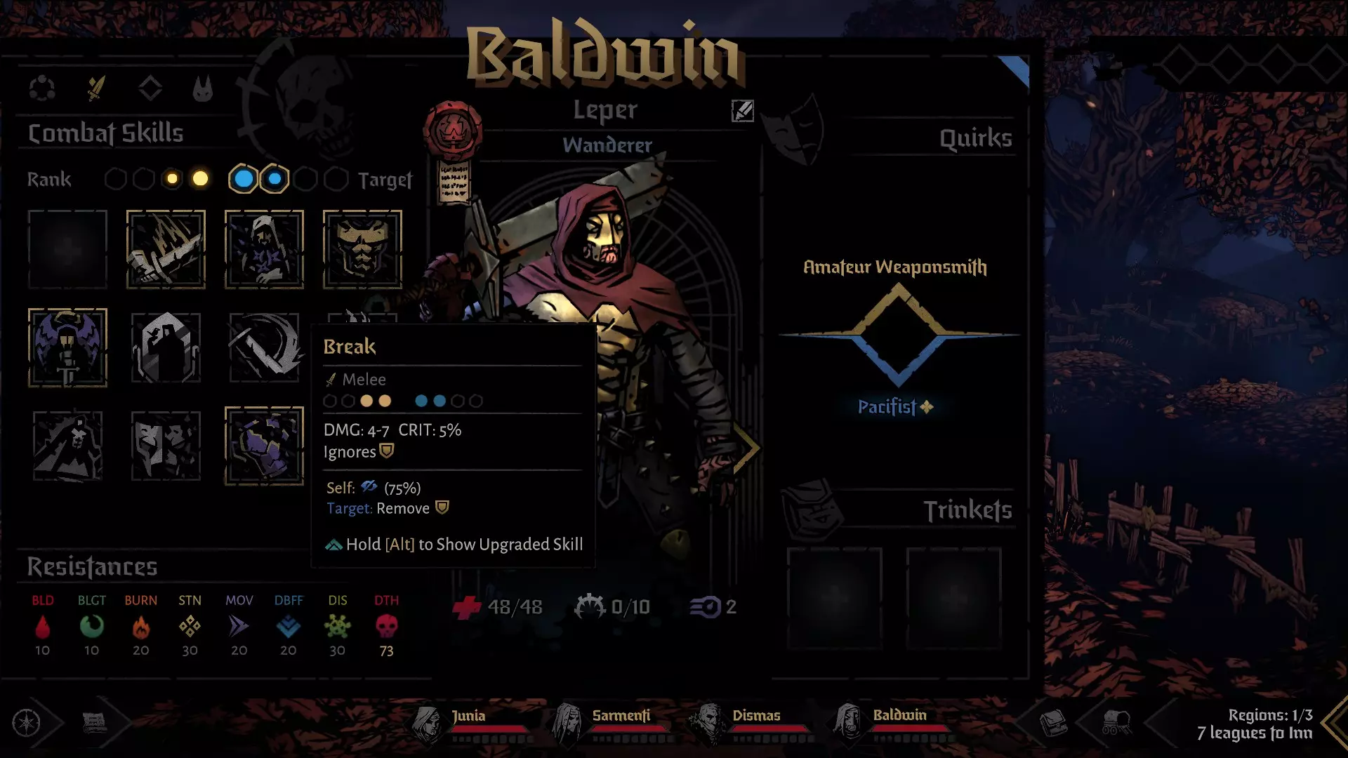 帮助麻风病人可以减少压力,但如果这还不够,我们还有皇家步伐技能,使用后可以向前移动并减少2点压力。
