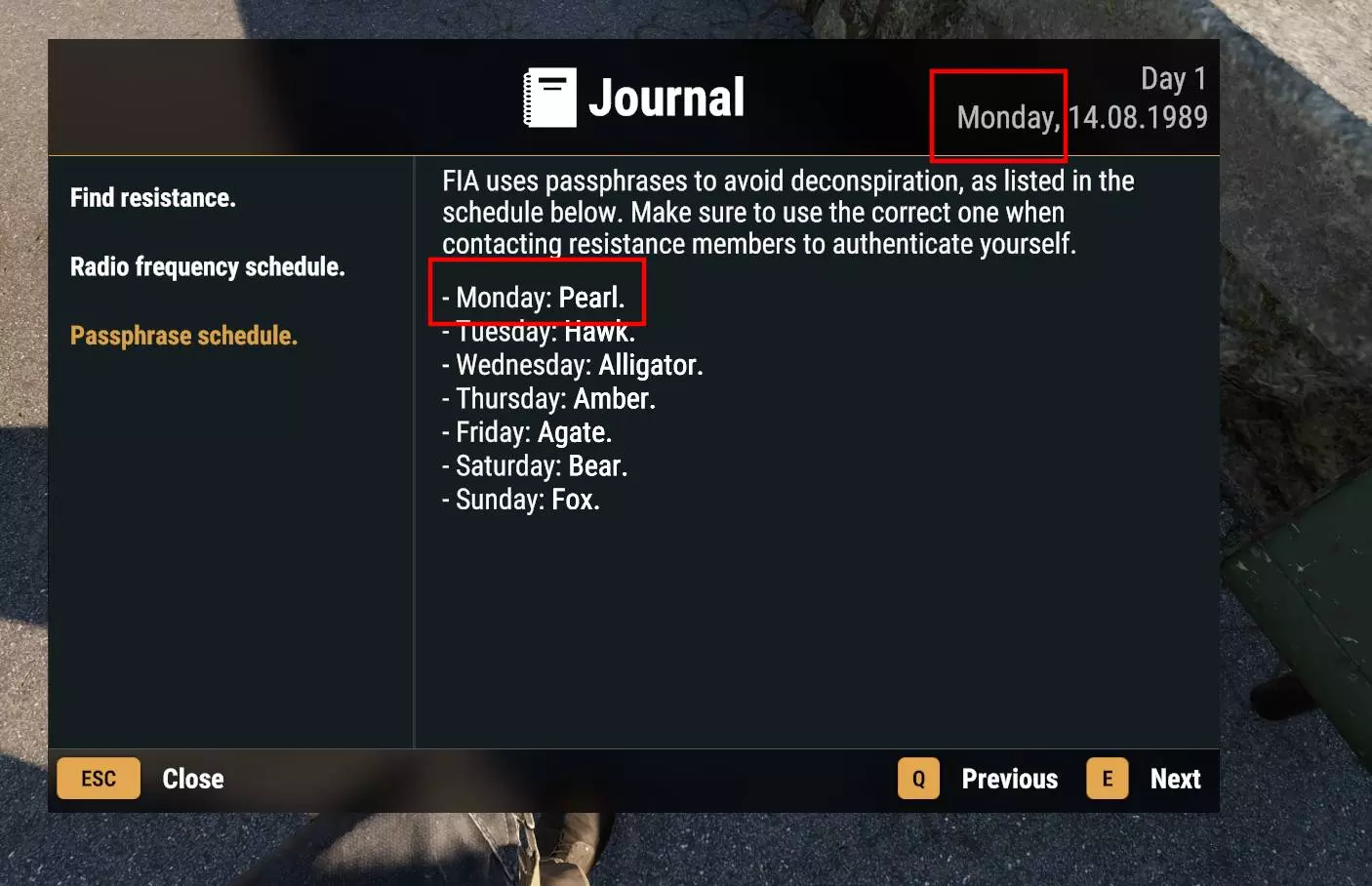按下【J】键:查看星期几和当前通行短语。你需要通过电话提供此信息以获取会面坐标。获取情报:获得坐标后,它们不会显示在地图上,你必须使用游戏内坐标自行找到该地点。标记位置并前往会面点!
