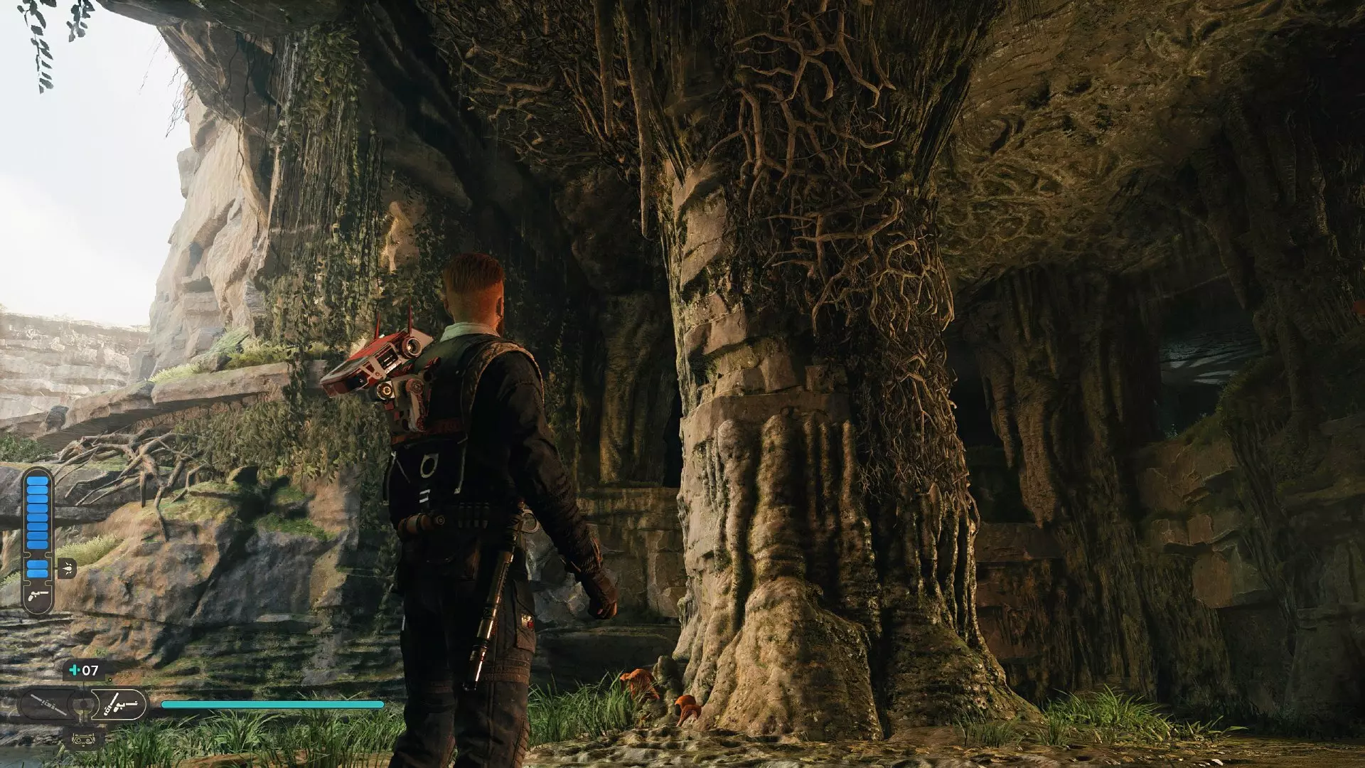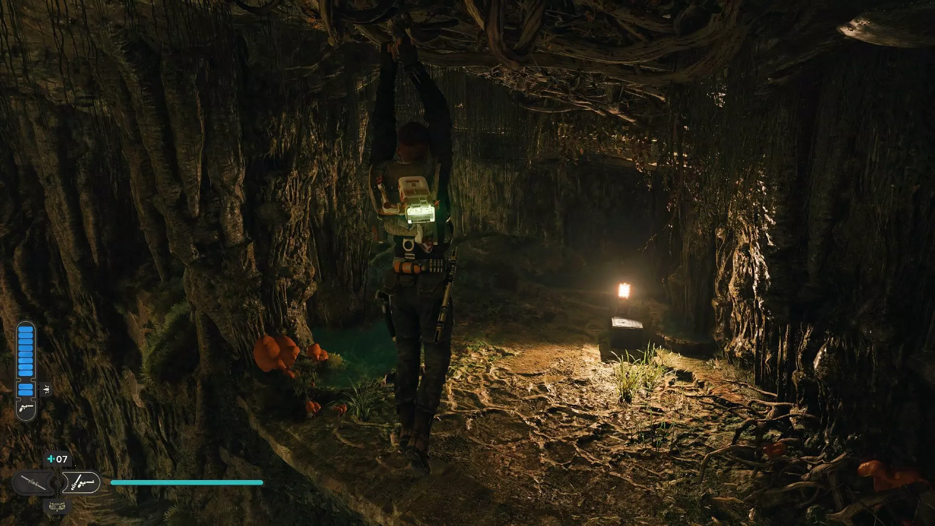 现在爬上洞穴中央柱子上的一些藤蔓!