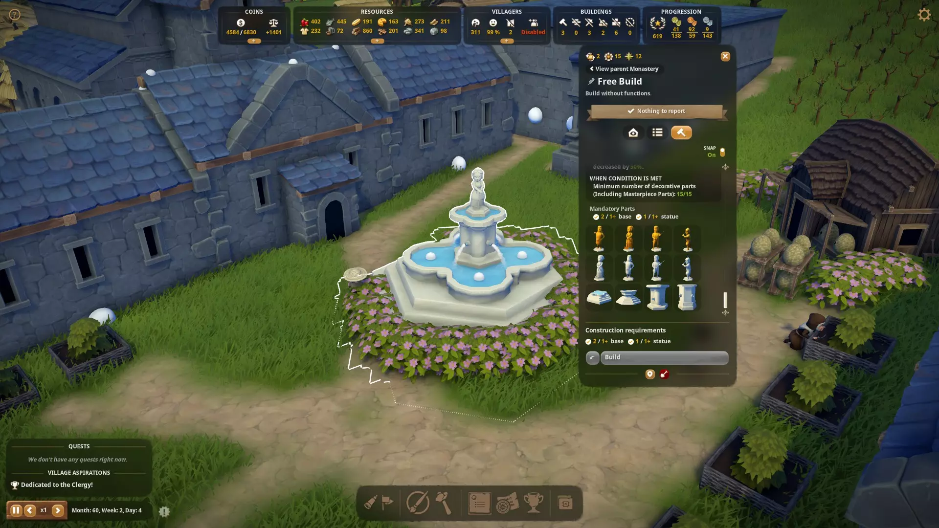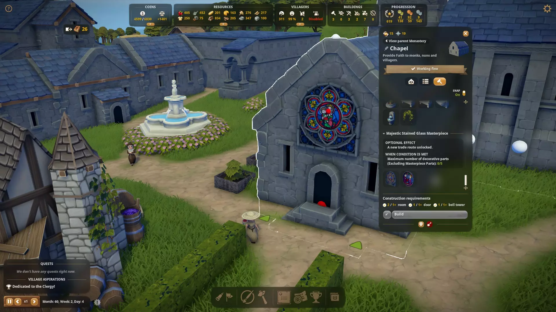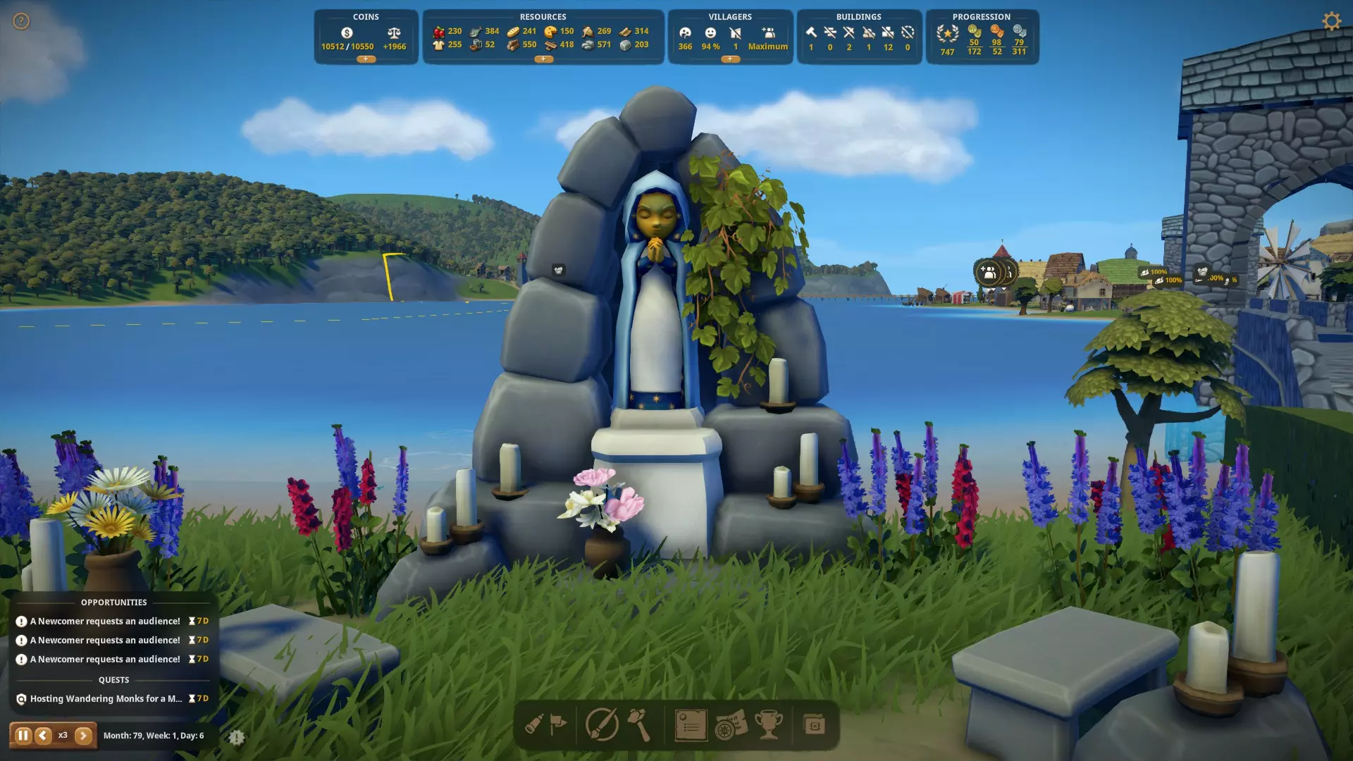 你需要大理石来建造修道院教堂和雕塑,这是解锁成就的最低要求。此外,还有许多其他雕塑的建造也需要大理石。你还可以通过仓库出售大理石赚取可观的收入。