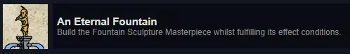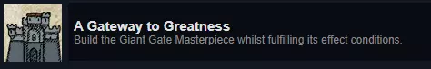 解锁方法:通过劳动力进度选项卡解锁酒馆和厨房并建造它们后,建造服务柜台并分配平民和啤酒进行销售(啤酒更容易销售,士兵似乎也喜欢),然后建造厨房并分配平民制作和销售餐食(由奶酪和野猪制成)。当你售出10份餐食后,显然会出现一名歌手,你将解锁杰作。我从未收到关于歌手的通知,但当我售出啤酒和10份餐食后,我就解锁了它。 达成条件后纪念碑的奖励:该建筑的辉煌度提升200%