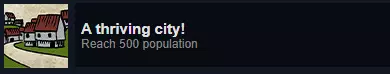这个成就有点难完成,我建议在游戏后期再去做,那时你可能已经不太在意它了,或者打算重新开档(没错,这款游戏重新开档非常让人上瘾)。我玩过的大多数地图只需要250到300名平民就能正常运转,所以要达到剩下的200人口会很繁琐。不过这也取决于你的玩法,你可以不断扩大领地,或者选择我下面这种偷懒的方法。 ZKE3PER的小技巧:建造一个独立的军事堡垒,里面只设兵营,附近建一座教堂、一个只卖一种食物的市场和一口水井,让士兵保持快乐。然后把所有新来的人都训练成民兵,直到人口达到500,最后你会得到类似这样的结果。