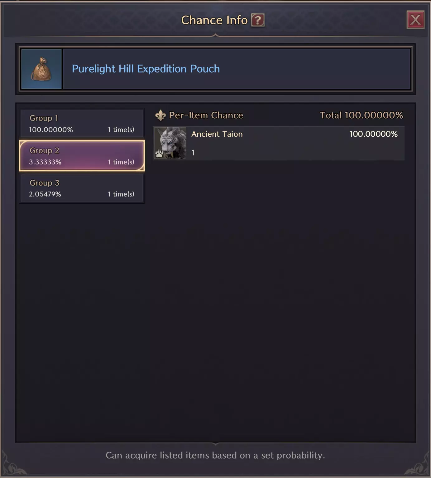 你会看到所有可能的掉落物。我们这里想要的是每个袋子里都有第二组。