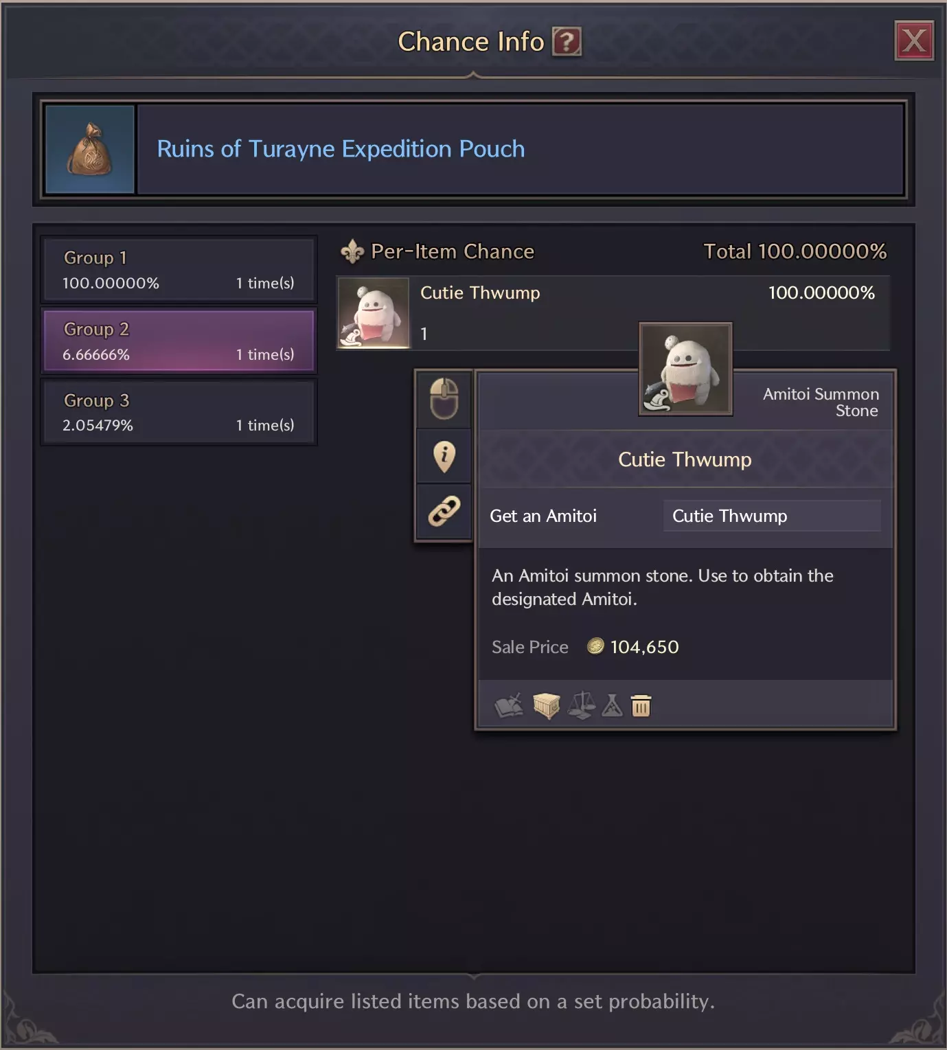 阿米托瓦三成员之一,用于【伙伴协同】效果,可增加1.5%物品掉落率!可在【图雷恩遗迹】以6.66666%的概率获得!