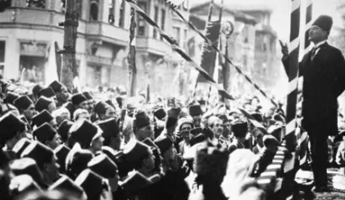 土耳其是一个横跨两大洲的国家,现代土耳其诞生于1922年,源于穆斯塔法·凯末尔·阿塔图尔克领导的反抗占领前奥斯曼帝国的欧洲列强的独立战争。1923年,土耳其根据当时与列强签订的《洛桑条约》确定了现有边界,同时废除了苏丹制,宣布成立土耳其共和国。穆斯塔法·凯末尔·阿塔图尔克随即当选总统。 该国开始了高速现代化进程:推行义务教育,将首都迁至安卡拉,改革了语言,女性获得了新权利,而政治生活则由人民党掌控。尽管民众仍信仰伊斯兰教,但土耳其国家成为世俗国家。土耳其在第二次世界大战期间保持中立,冷战时期成为西方世界和美国的盟友。土耳其于1952年加入北约,并开始容纳美国军事基地,其中包括核武器。与此同时,反对党获得允许,伊斯兰教开始在该国政治生活中重新抬头。