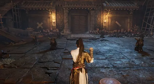 - 使用火箭点燃沿途的火盆,然后击败敌人并沿着地下路径前进。 - 推开巨大的石门→进入大厅。 - 吹奏长笛以解锁下一个房间。