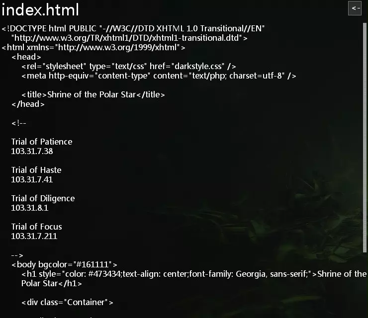 直接使用端口破解(porthack)进行黑入,查看源代码,获取四个试炼的IP地址。