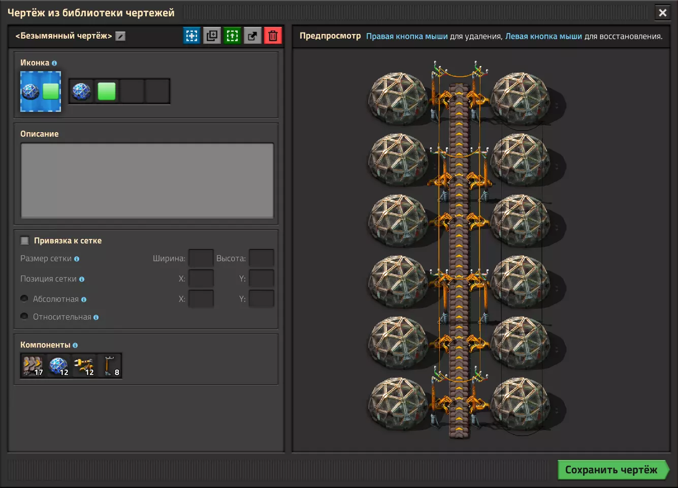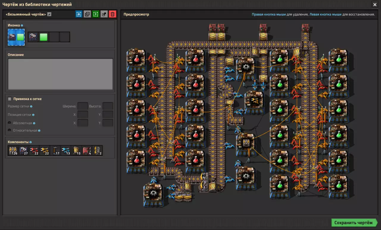 结语 本指南到此结束。 附言:这些图纸的部分基础内容来自某位作者,但时隔多年,我已经记不清具体是谁了。设计图已大幅修改,以实现更紧凑的布局、降低资源消耗,并修复传送带方向相关的问题。 手册(位于物品栏右侧的【导入字符串】按钮)由于Steam的限制无法输入过长文本(共28页)。