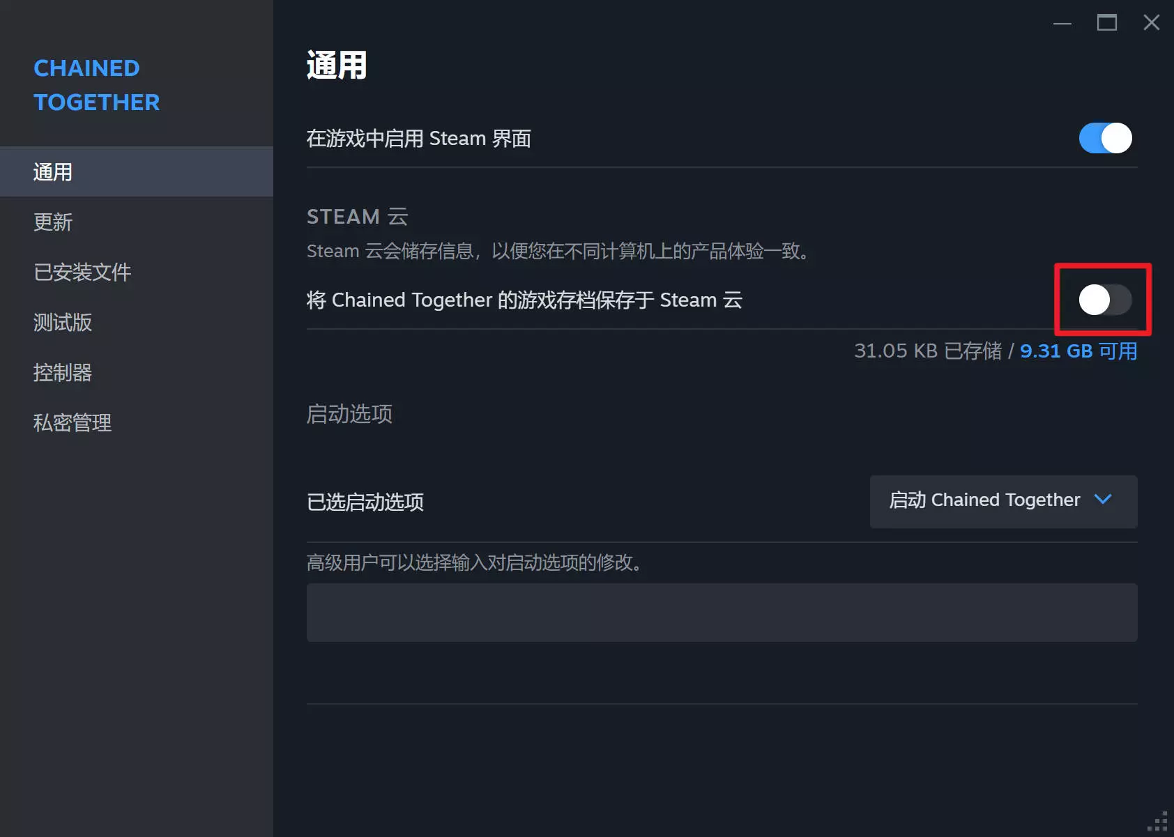 3.使用翅膀选项仅适用于单人,即谁选择使用翅膀,进入游戏后谁就能用。例如:房主使用翅膀但其他人不使用翅膀,进入游戏后只有房主身后有翅膀。 4.使用【Ctrl+F】可以快速查找所需的攻略。 存档 可以使用翅膀的存档已上传,该存档替换后可以使用翅膀,并且不会更改游戏的设置和目前的游戏进度。翅膀存档替换后无法解锁10 Wings成就!存档位置:C: Users 用户名 AppData Local ChainedTogether Saved SaveGames 快速打开存档位置:按win+R,然后输入 %USERPROFILE%/AppData/Local/ChainedTogether/Saved/SaveGames,之后按enter 替换存档方法: ①在左侧右键游戏名字后点属性。 ②点击如图所示的按钮,显示灰色即为关闭云同步。