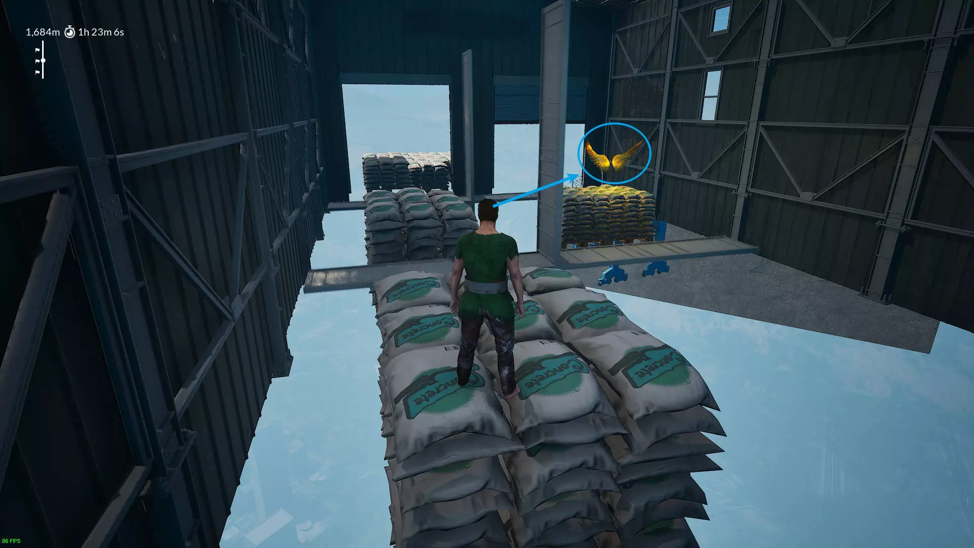 8.2523米 通过伞跳上来之后,不要经过三个风车。继续往前走,在房子后面。