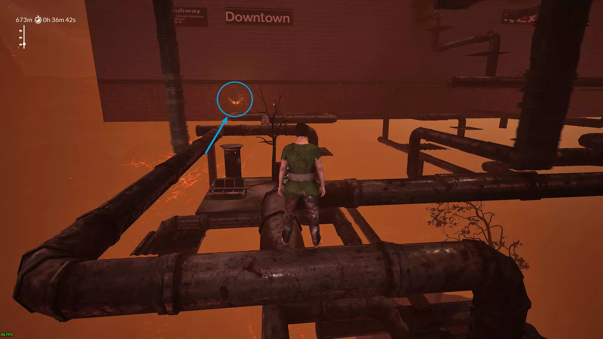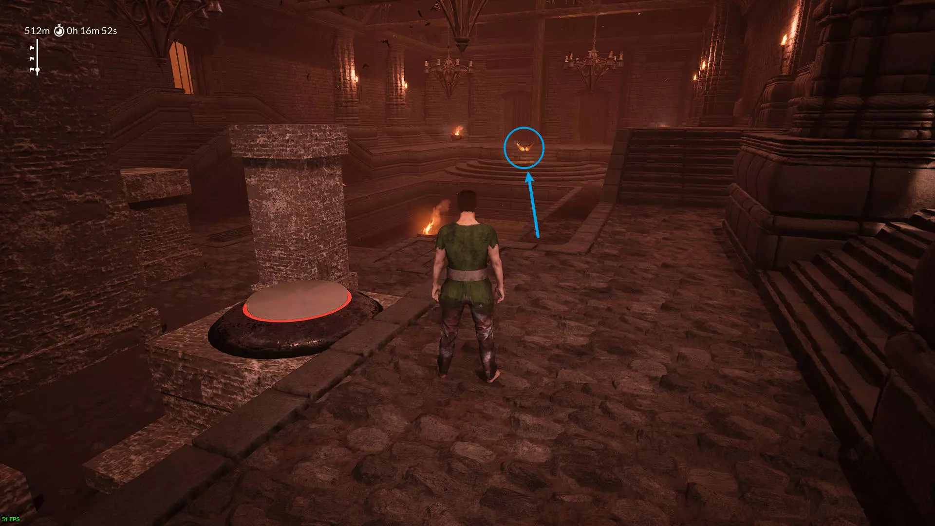2.512米 坐电梯后爬楼梯,在一堆石柱上踩按钮开门的地方,向后看。