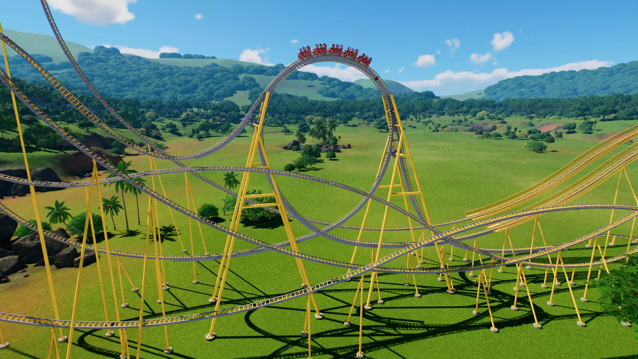 蓝图数据 此蓝图满足《过山车之星2》解锁成就Best of the Best的所有条件: 轨道长度:3434.4米(要求:>2500米) 刺激度:9.13(要求:>9.0) 当前刺激度评分仅为基础数值——尚未应用任何场景或环境加成。 你可以通过在 ride 周围添加装饰和主题场景来进一步提高评分。如何使用蓝图 操作很简单,以下是快速步骤: 1. 打开游戏并进入边境工坊 2. 选择【浏览】标签,将蓝图代码粘贴到搜索栏(无需连字符),然后按回车键 3. 订阅过山车蓝图 4. 返回游戏并将过山车放置到你的公园中 5. 连接入口和出口路径,测试并开放该设施 6. 成就将自动解锁! 自建提示 如果你更愿意从头开始创建自己的过山车,以下是基于蓝图设计的一些提示: 使用弹射式过山车类型 弹射式过山车可以快速加速,跳过缓慢的链条提升段,并提前提升兴奋度。如果需要,你也可以在建造过程中添加更多的发车区域。 保持速度 设计过山车时,要让轨道的大部分路段都保持高速。只在轨道末端添加制动段来减速。 频繁测试 建造时保持测试功能开启。尽量增加轨道段数量,使兴奋度得分超过10,同时注意你的G力限制。 使用抛物线“失重”轨道段 将高速与波浪形的上下轨道段相结合,模拟空中飞人体验。这是获得高兴奋度评分的可靠方法。 【调整摩擦设置】 如果完成后你的兴奋度略低于9.0,可以尝试将摩擦设置为0.7–0.9。在G力保持在可控范围内的前提下,这有助于提高速度和兴奋度。添加环境增强元素 通过使用场景、特效和主题元素装饰区域,可以提高最终评分并帮助达到成就解锁条件。