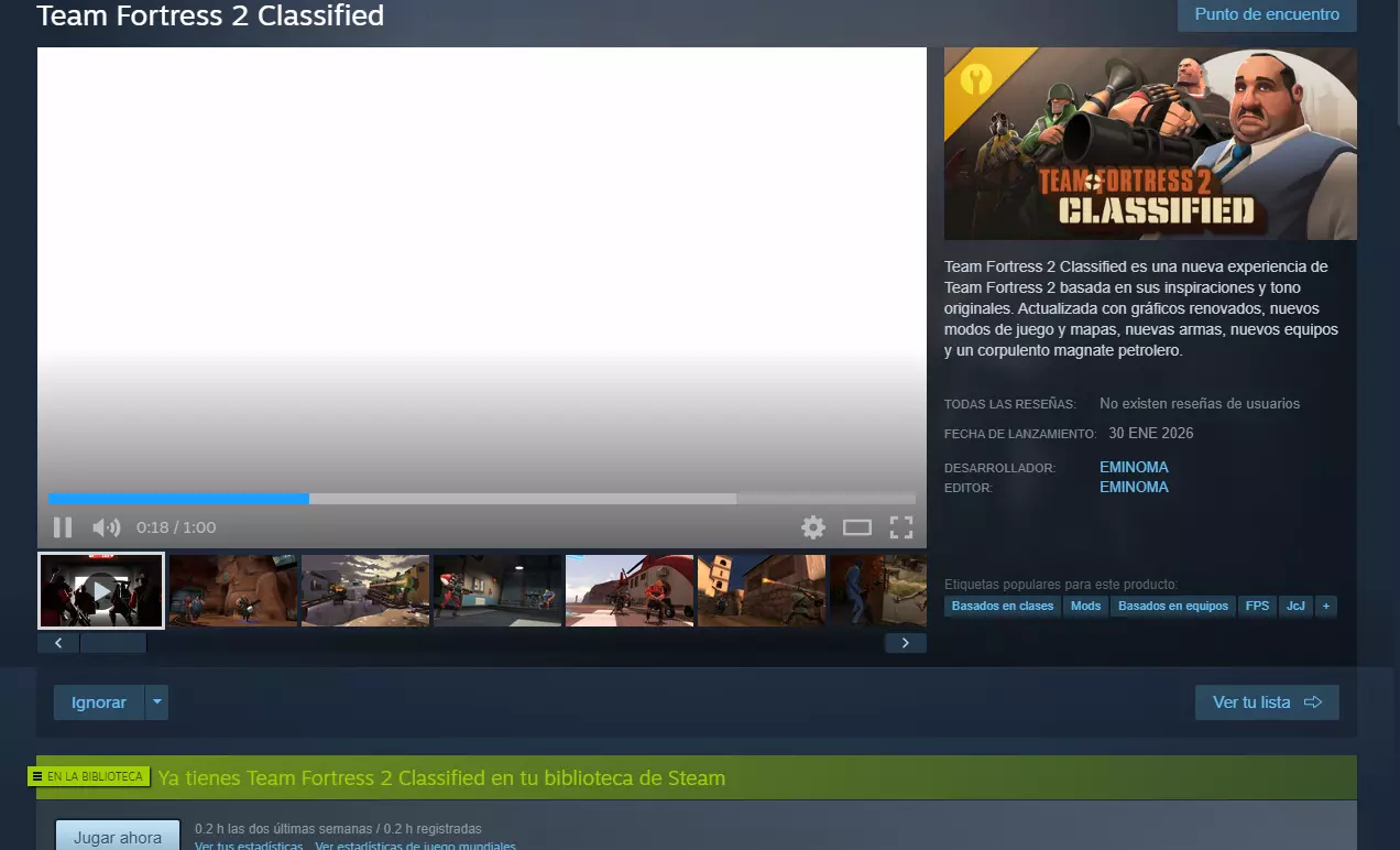 如果你已拥有该游戏,请从库中安装。现在安装《军团要塞2》机密版。在Steam上搜索“TEAM FORTRESS 2 CLASSIFIED”。