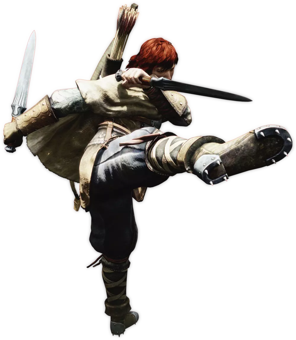 这是一个实力很强但同时也被严重高估的职业。使用剑和盾时,除了或许能用【Dire Gouge】技能对付大型敌人这一点外,其他所有属性都比不上战士,不过即便在这方面,双匕首凭借【Hundred Kisses】技能也会是更优选择,所以让该职业使用剑和盾并非理想之选。然而,当装备弓和匕首后,该职业的优势才会显著发挥出来。其中首要的一点是,刺客拥有游戏中最出色的防御技能——【隐形】。【精妙击杀】也值得特别关注,它能让几乎所有战斗都变得像小孩子的游戏一样简单。此外,刺客和游侠一样,凭借【山猫之眼】这一技能,可以轻松击中最远处的目标,从而避免与那些最令你头疼的敌人进行近距离战斗。和所有【双剑使】一样,拥有基础闪避机制,机动性强且不存在走位问题。其他方面则不如同类型的【Strider】。 3. 魔弓手