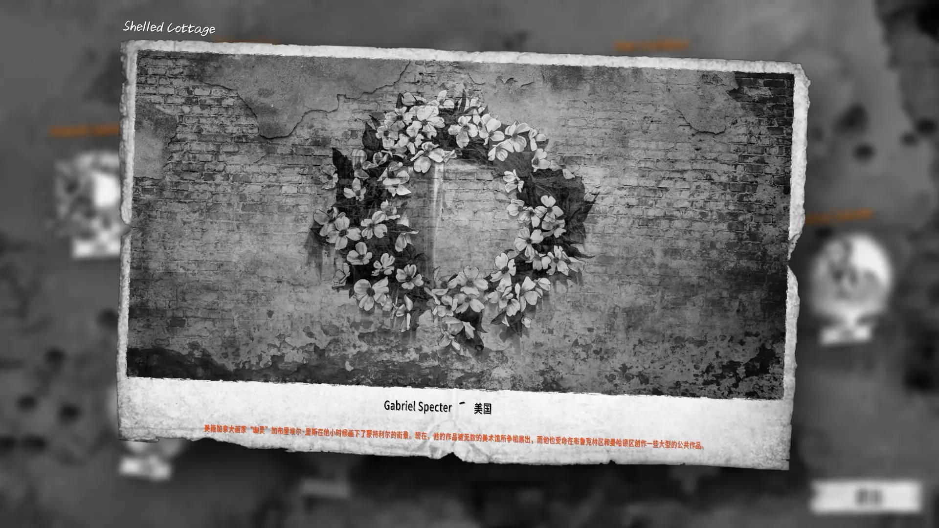 字条:街头艺术。战争不会闭上人们的嘴。有时,墙上的涂鸦要胜过千言万语。购买慈善捐款DLC解锁地图涂鸦。成就要求收集完10个涂鸦,人物靠近涂鸦,涂鸦亮一下,即收集成功。该成就不需要在一局游戏内完成。经典模式右下角可以查看收集进度。 存档备份方法: 【你安装Steam时选择的文件路径】/Steam/userdata/【一段代表你的Steam账号的数字】/282070/remote/ 在remote文件夹中的storiessavedgames和storiessavedgames.alt两个文件即为存档。复制它们即可备份,将备份文件覆盖回来即可读档。 10个涂鸦所在地点