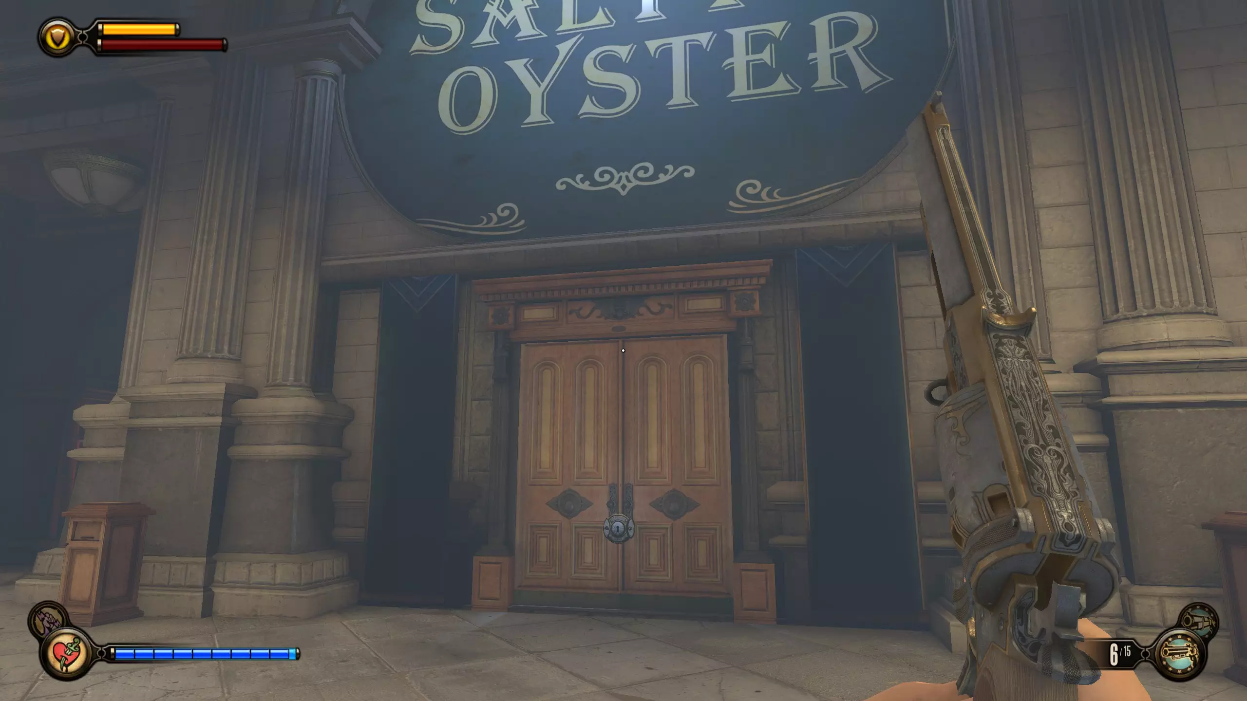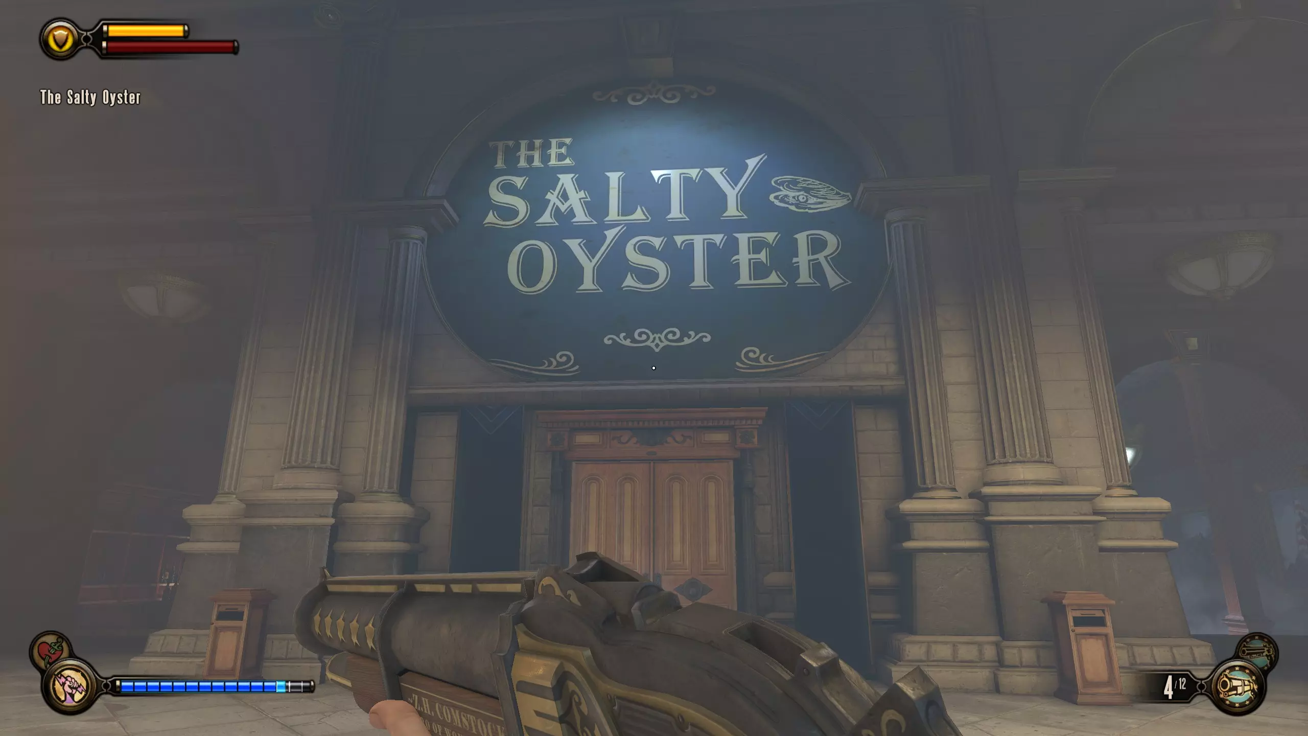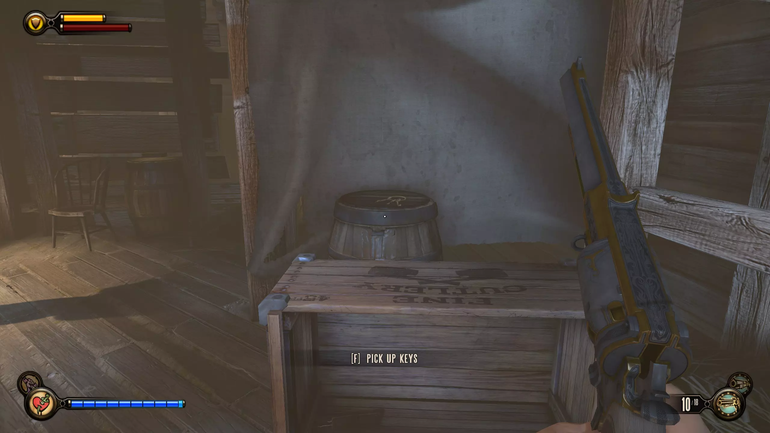 留声机#57和灌注#20 现在一路返回咸牡蛎酒吧。会有更多敌人刷新。到达酒吧后,走到吧台后面,按下收银机下方的按钮。解锁区域内的柜台上有一个灌注,左侧的金属桶里有留声机。