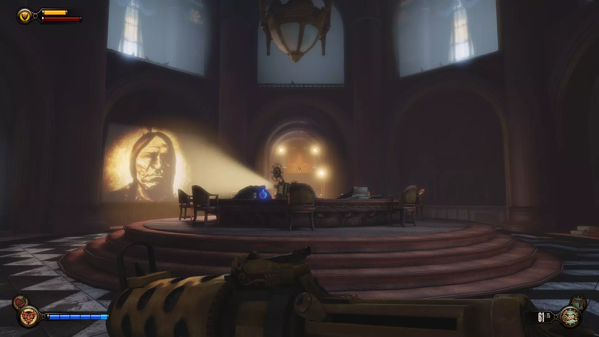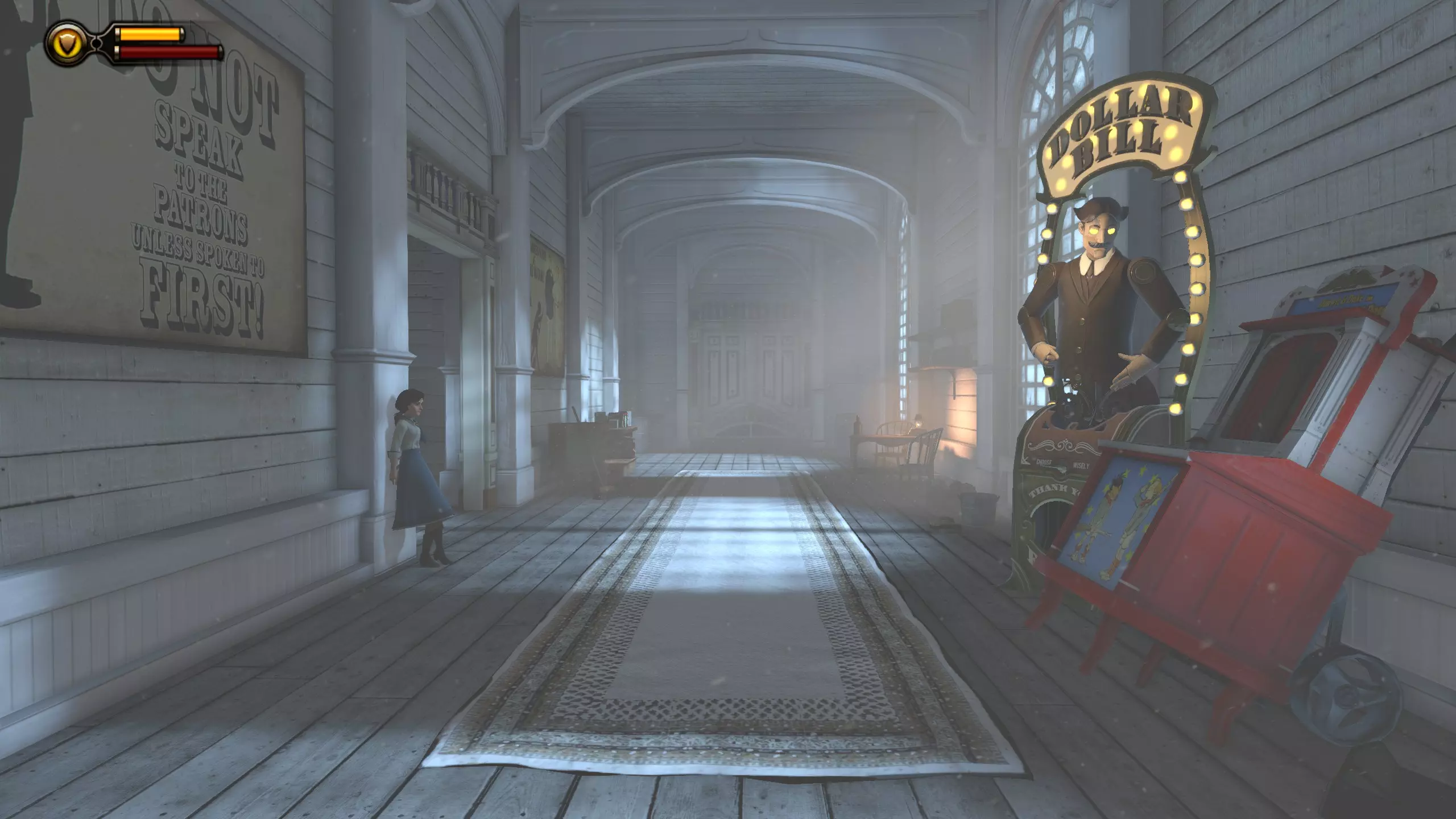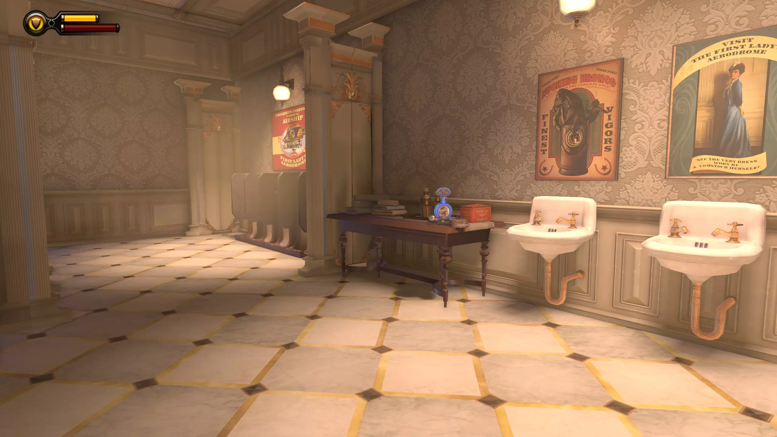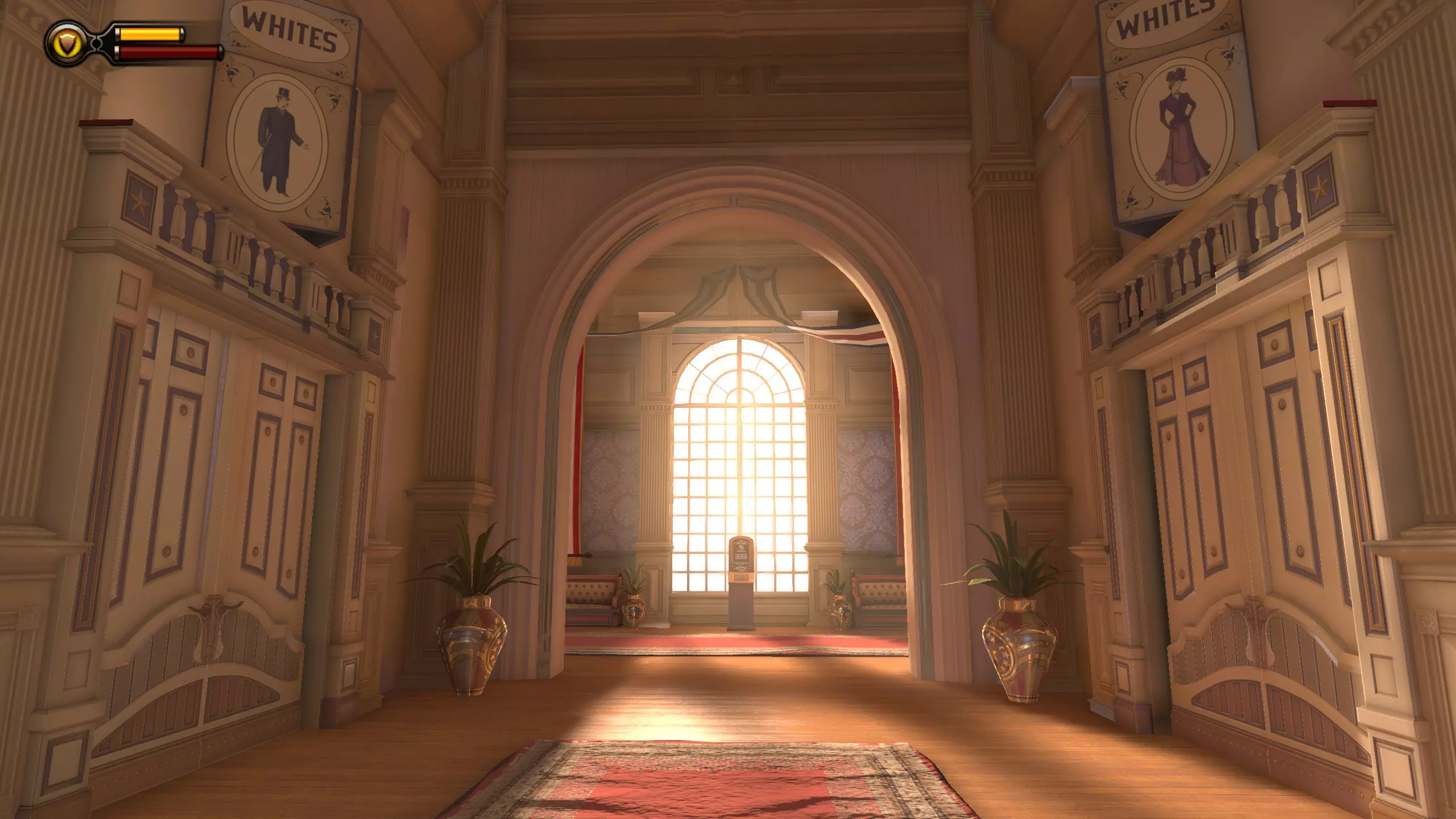 活动电影放映机#10和语音留声机#19 拱廊里连续的3台活动电影放映机不计入成就。 进入拱廊房间后,前往房间另一侧,那里有洗手间和活动电影放映机。语音留声机在男洗手间内。
