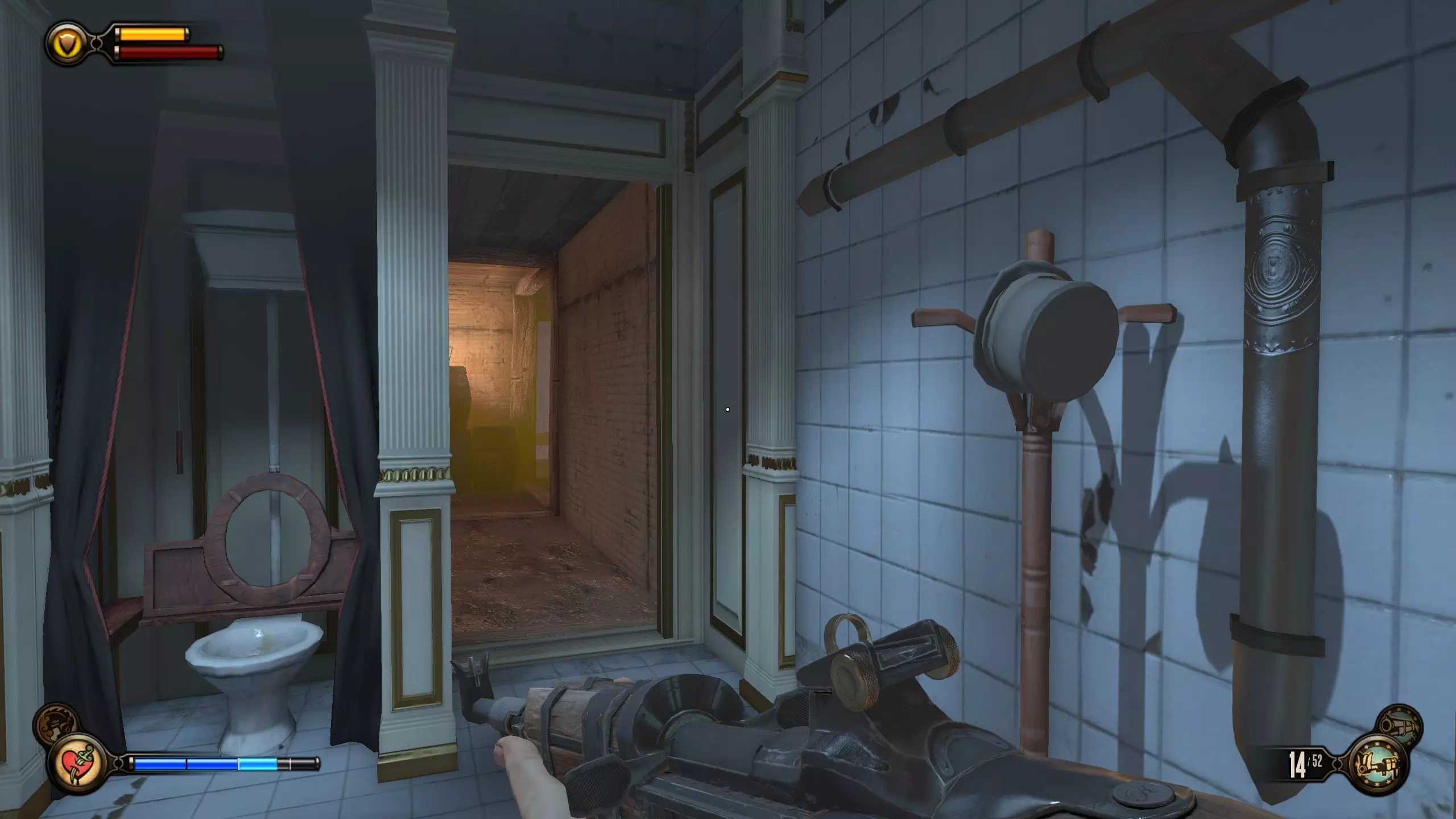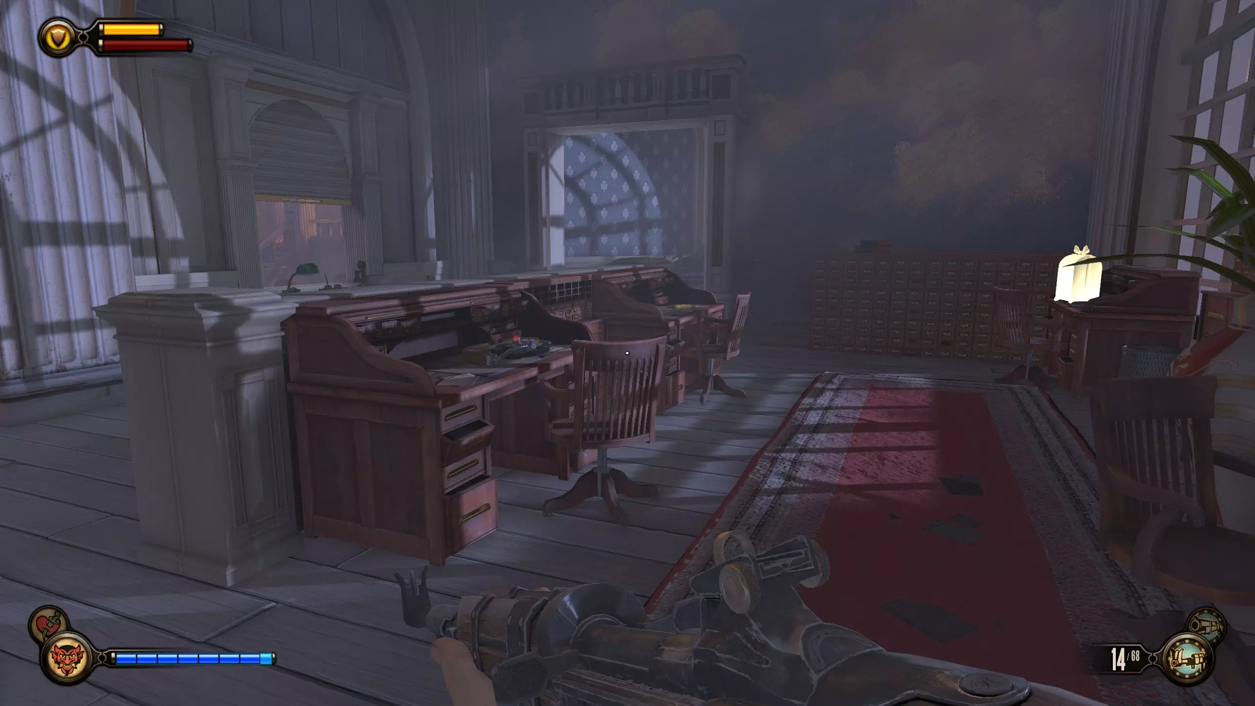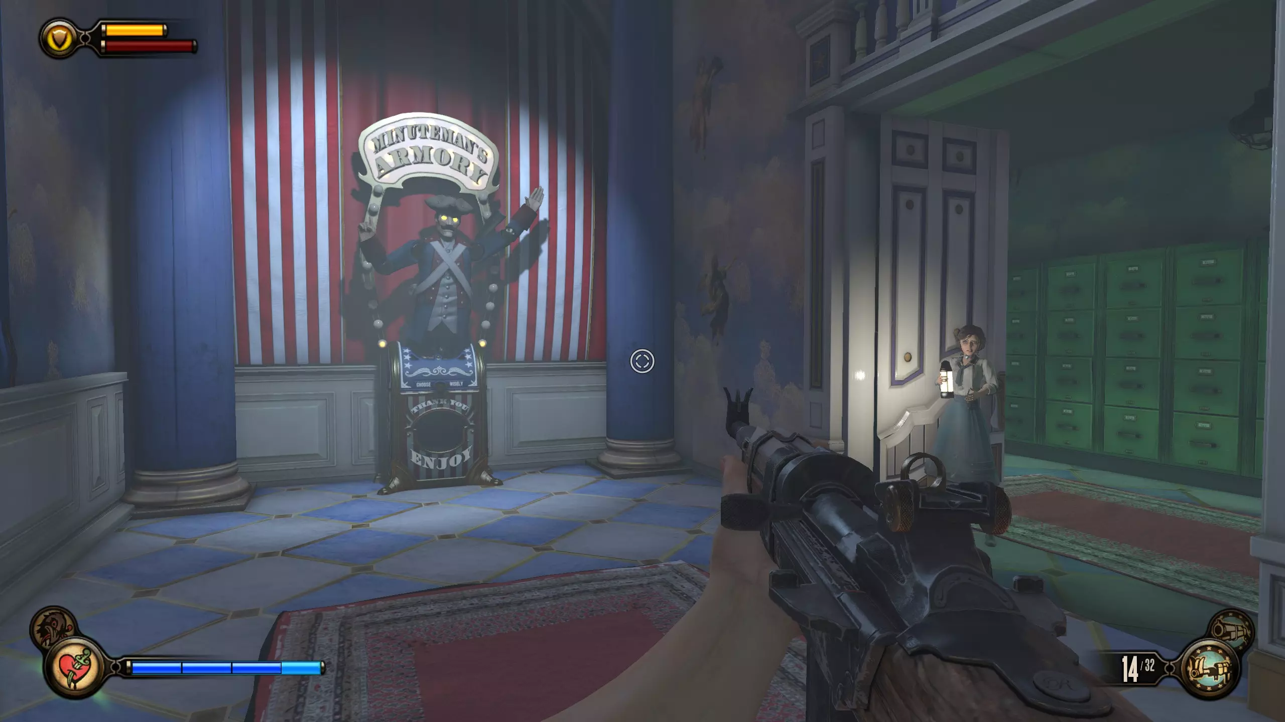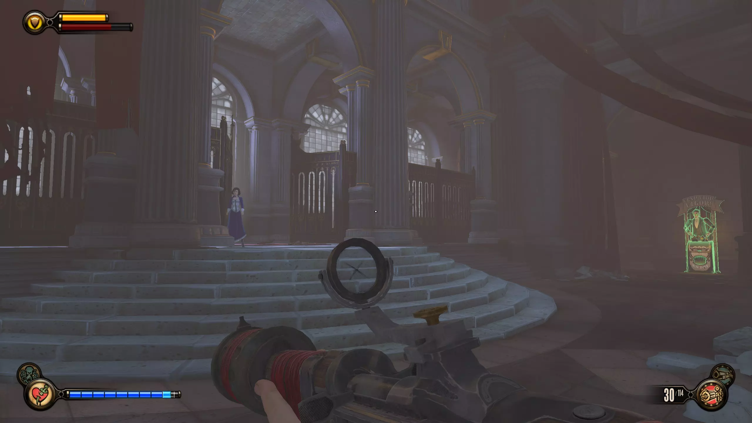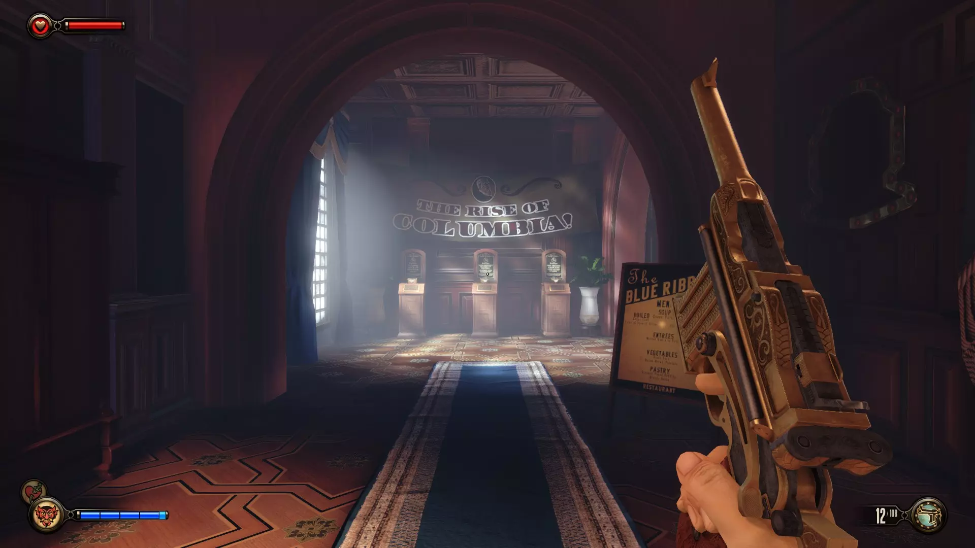 活动电影放映机#10和语音留声机#19 拱廊里连续的3台活动电影放映机不计入成就。 进入拱廊房间后,前往房间另一侧,那里有洗手间和活动电影放映机。语音留声机在男洗手间内。
