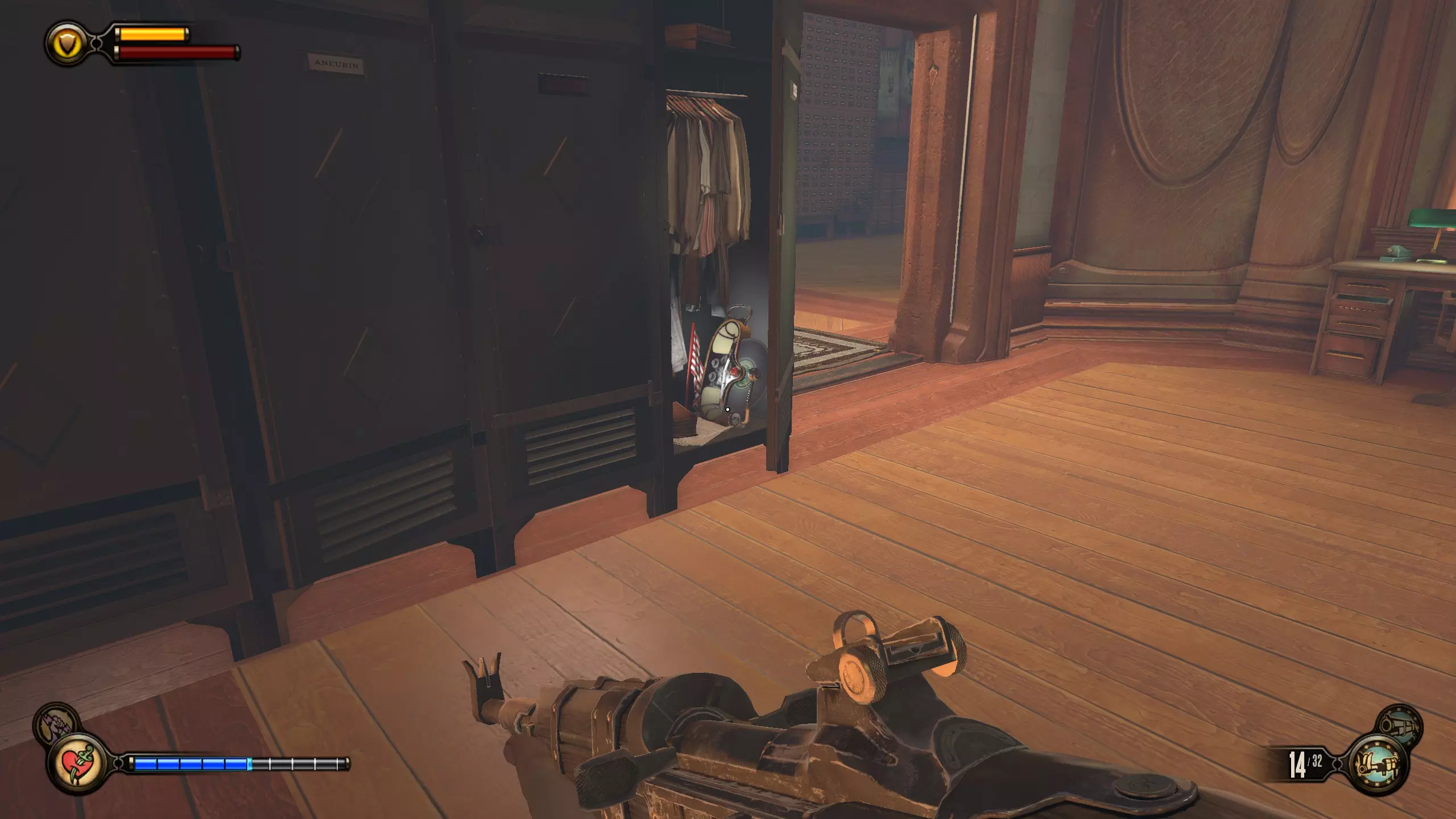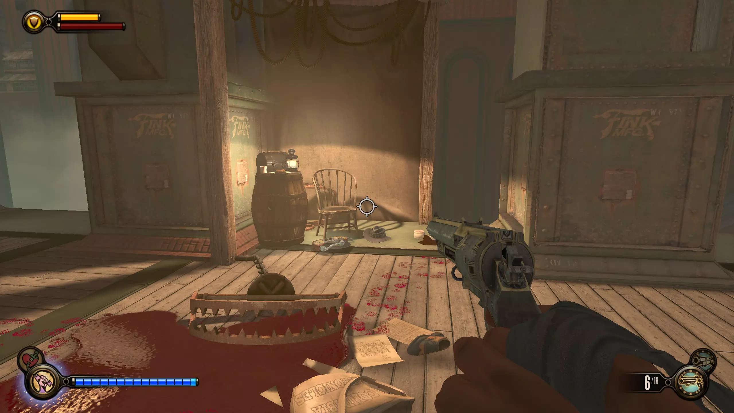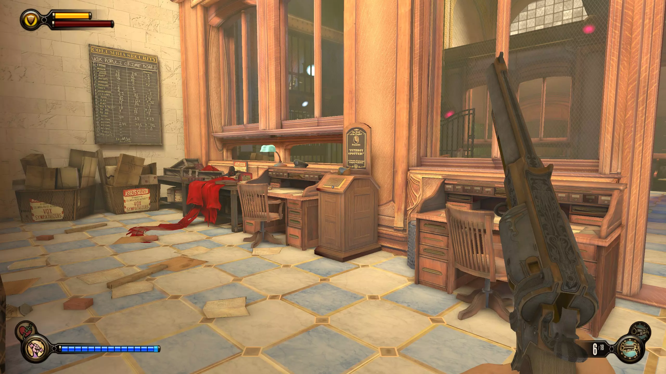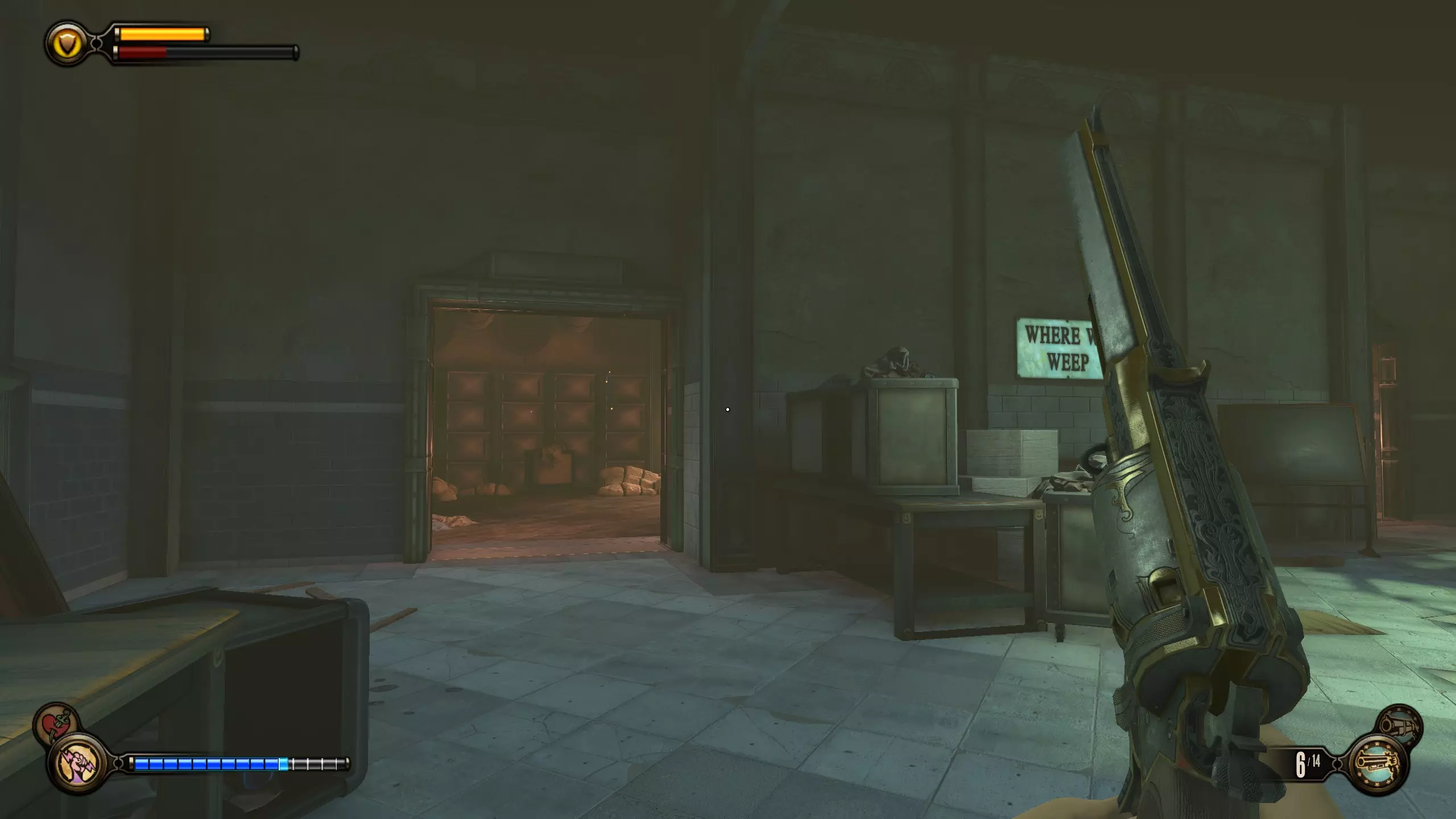 留声机32号和灌注9号:击败一群斯莱特的手下后,会出现一个斯莱特打开后敌人涌出的房间。该房间位于斯莱特出现在阳台上的位置左侧。进入房间,桌子上有一台留声机。然后跳上桌子,工具箱里有一个灌注。
