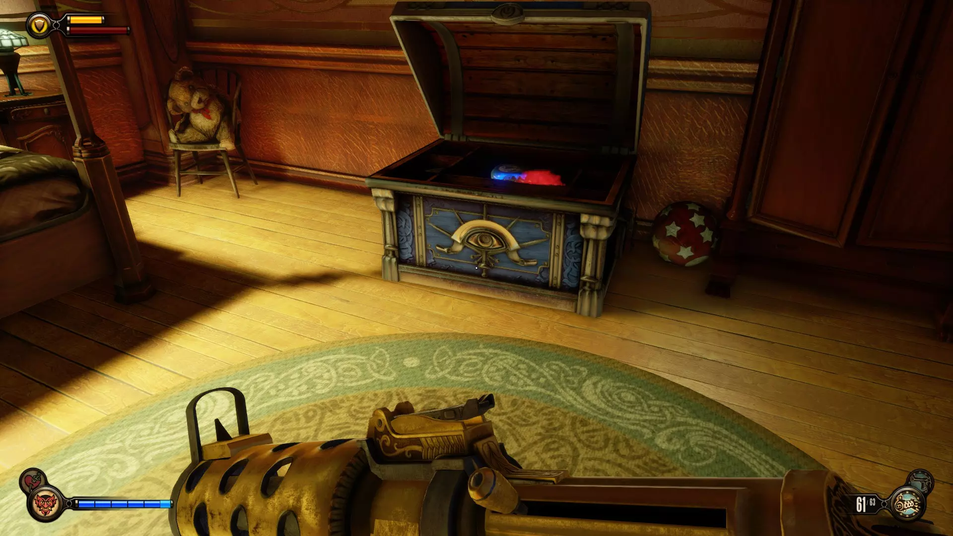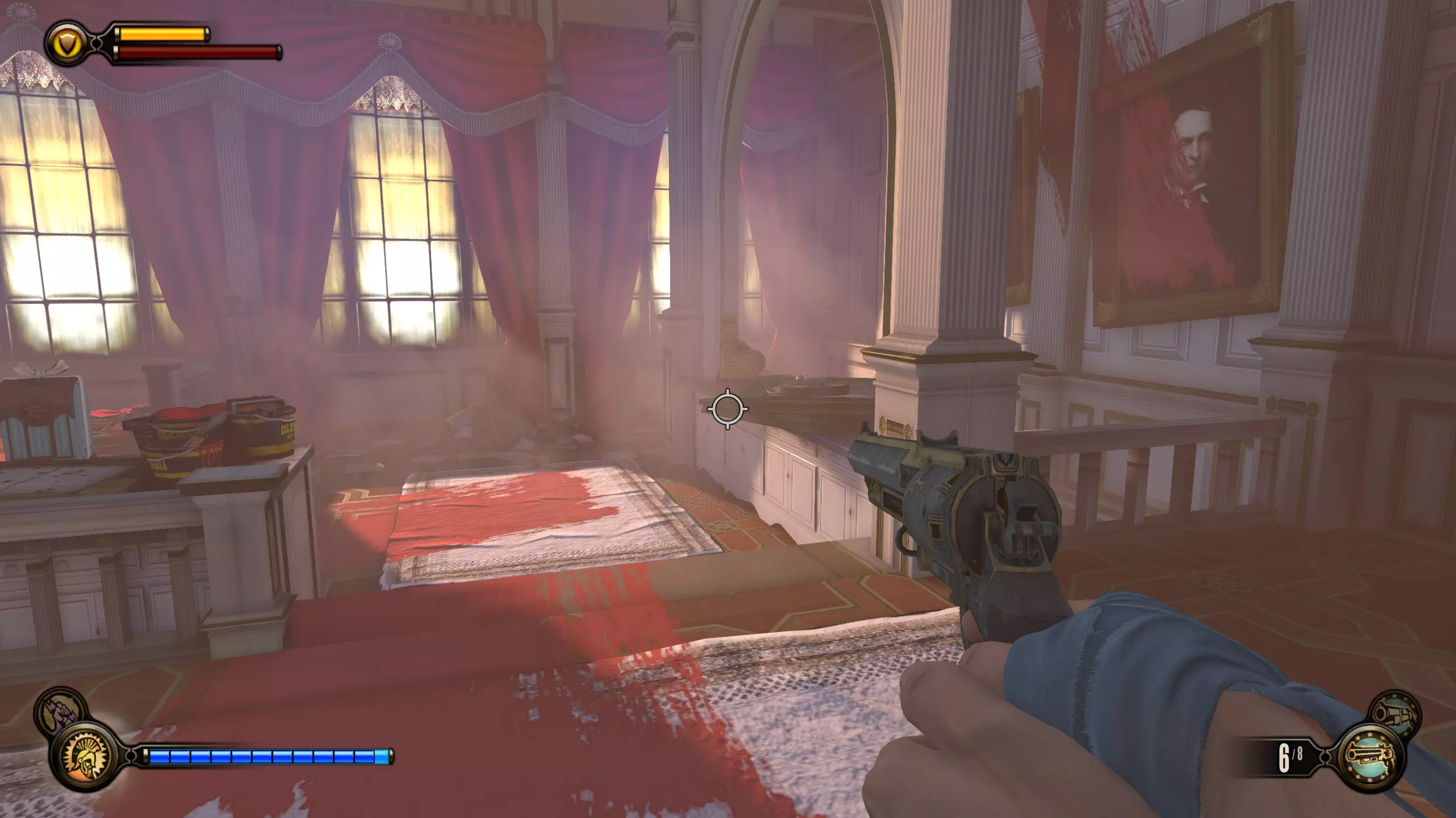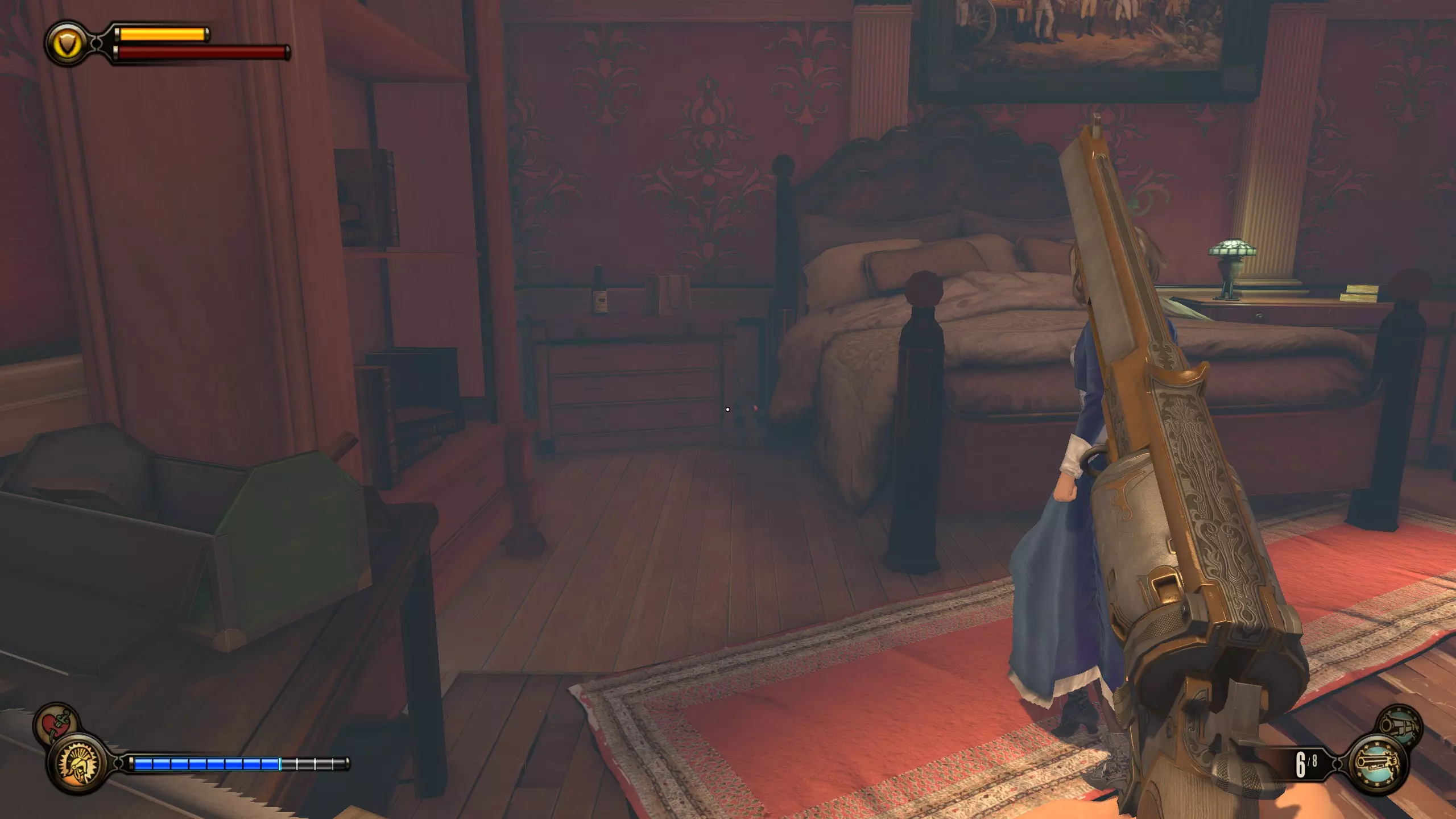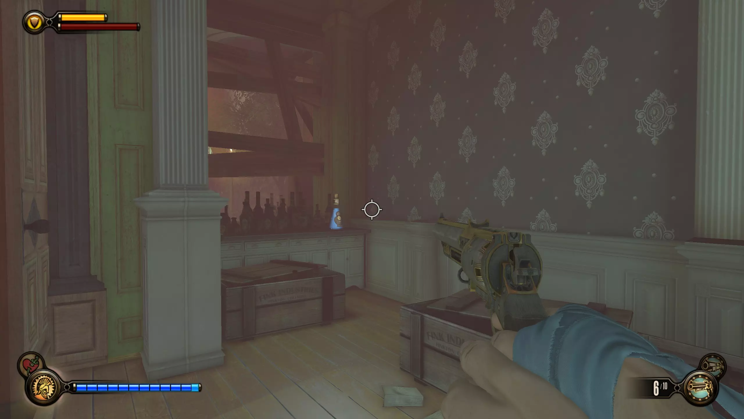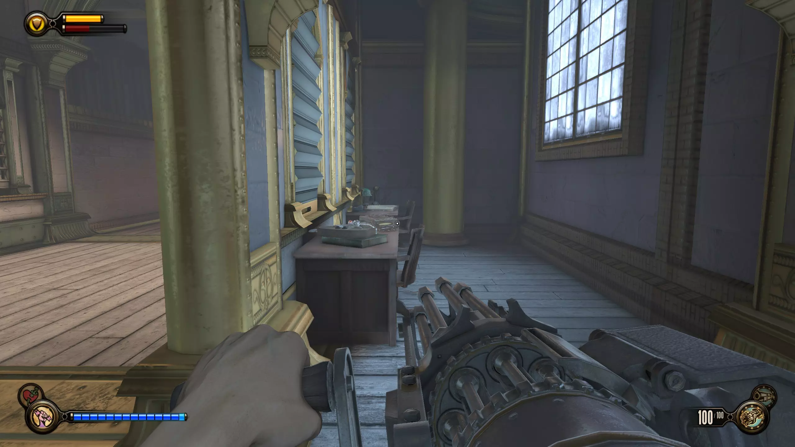 留声机32号和灌注9号:击败一群斯莱特的手下后,会出现一个斯莱特打开后敌人涌出的房间。该房间位于斯莱特出现在阳台上的位置左侧。进入房间,桌子上有一台留声机。然后跳上桌子,工具箱里有一个灌注。