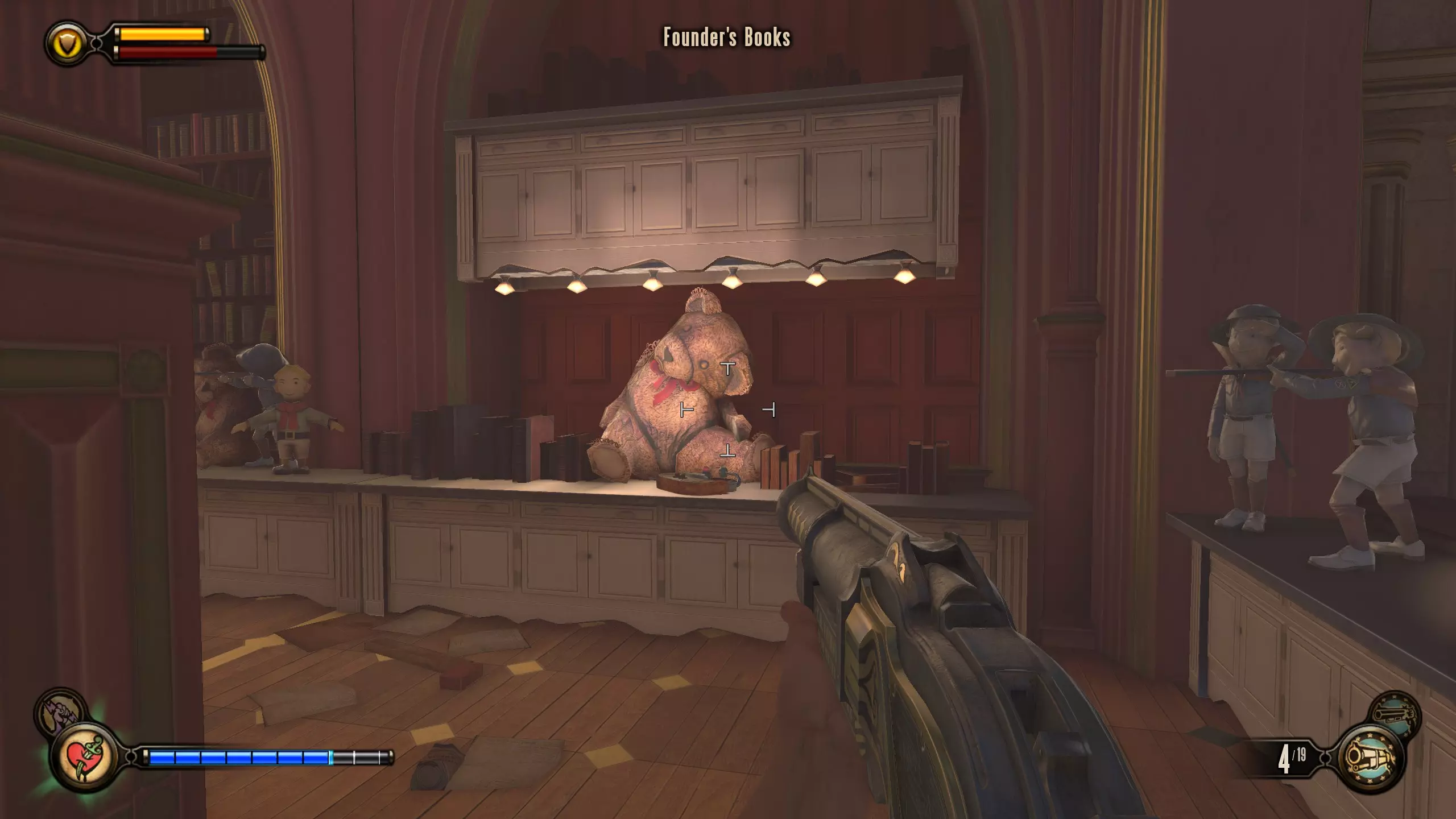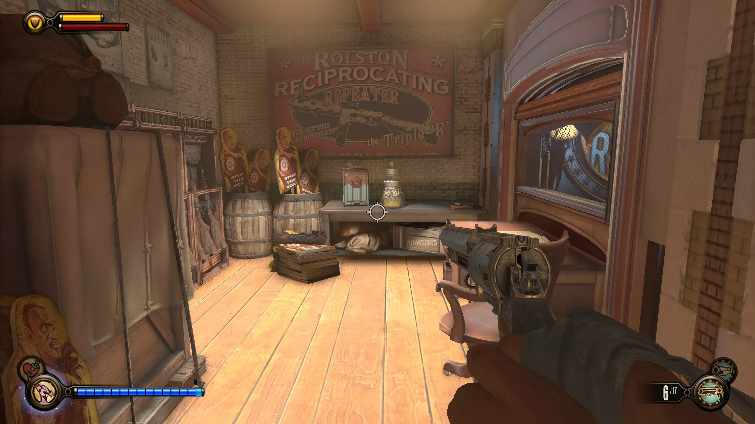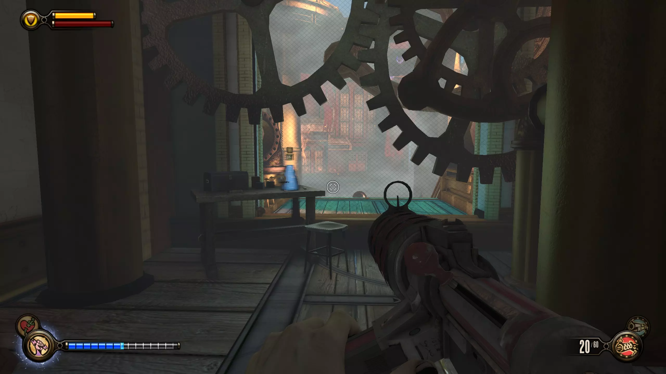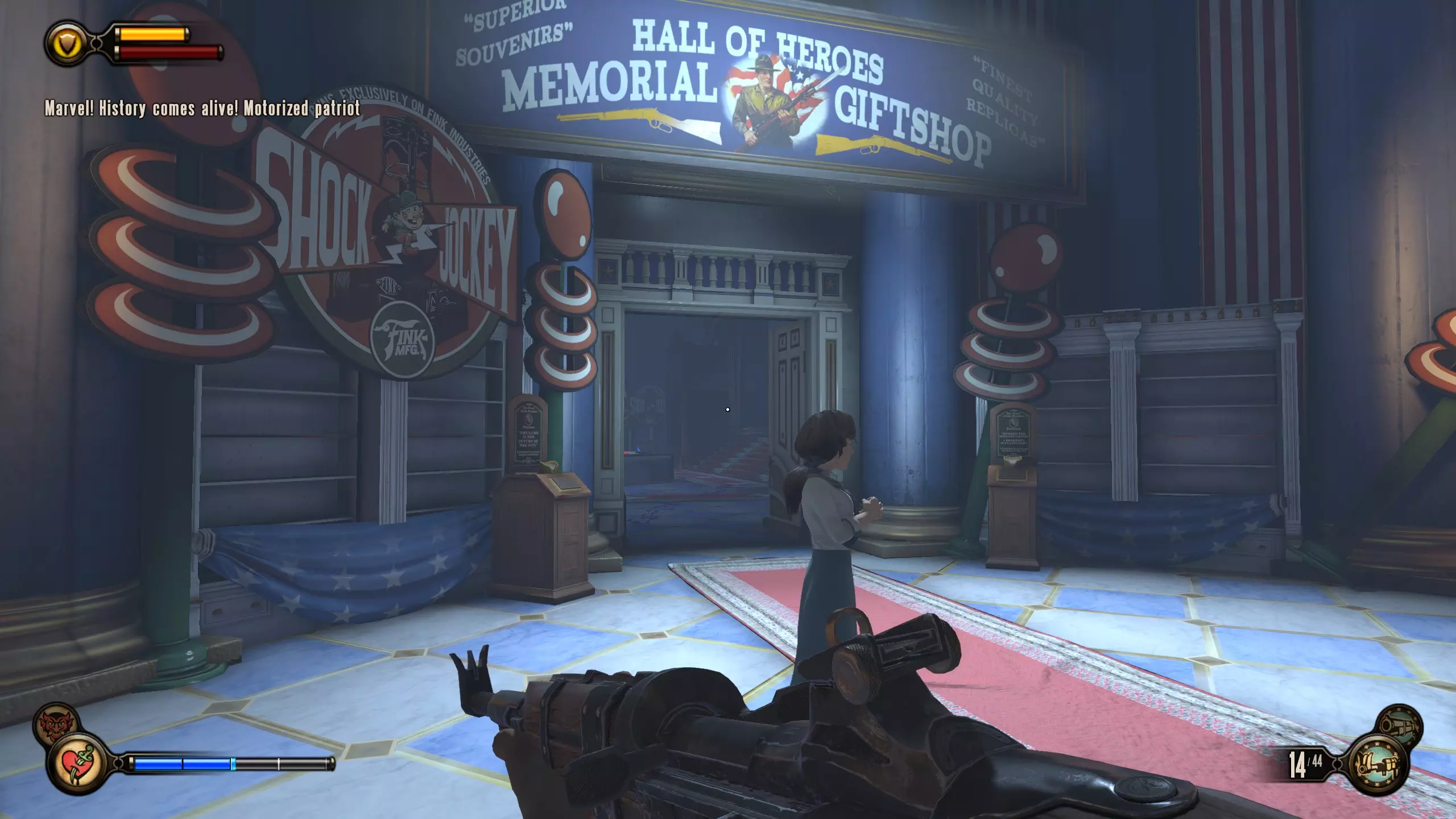 康姆斯托克中心屋顶 活动电影放映机4-6号和灌注1号 走进蓝带酒吧后,你面前会有三台活动电影放映机。与卢特斯双胞胎交谈可获得你的第一个灌注。