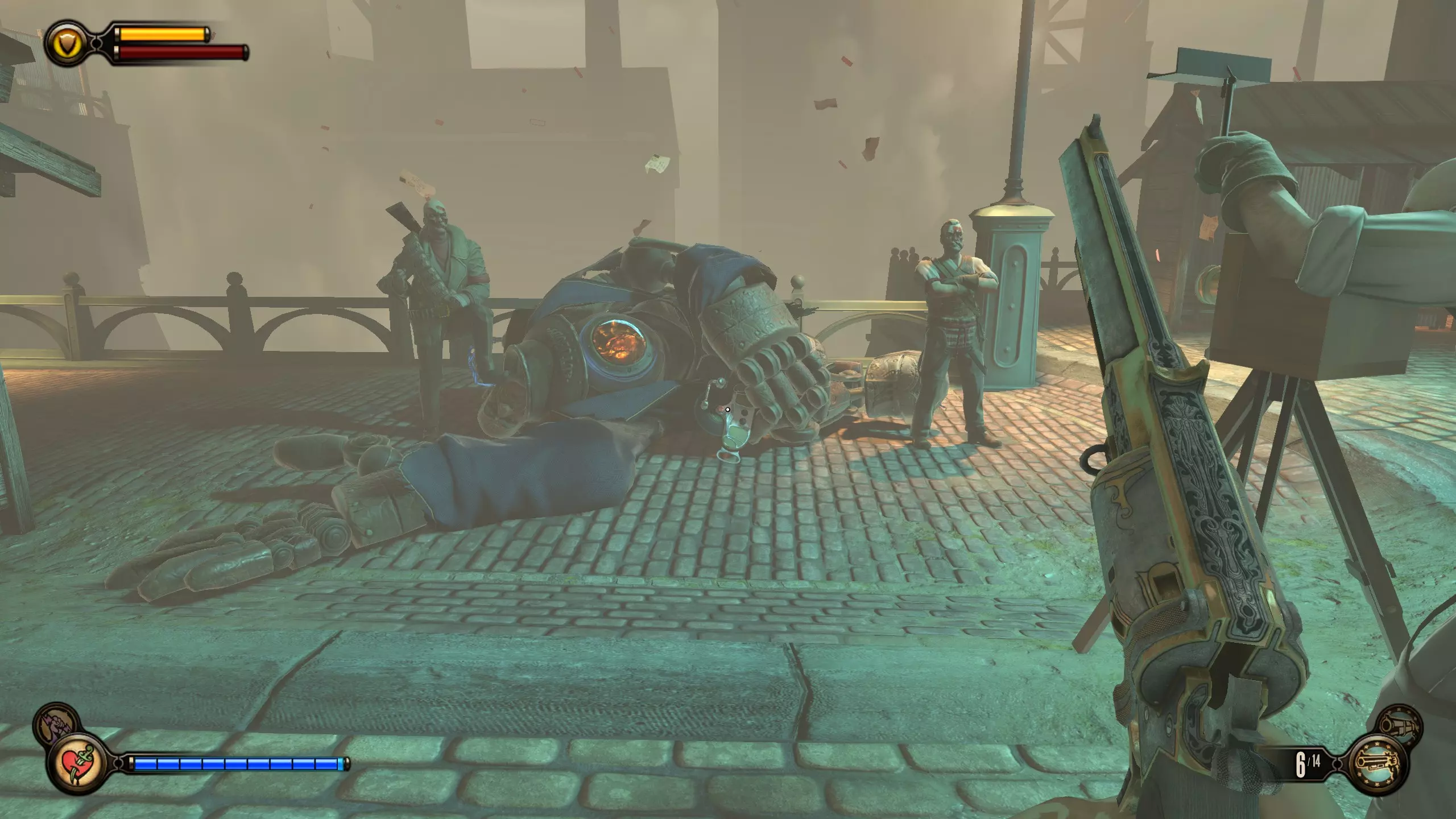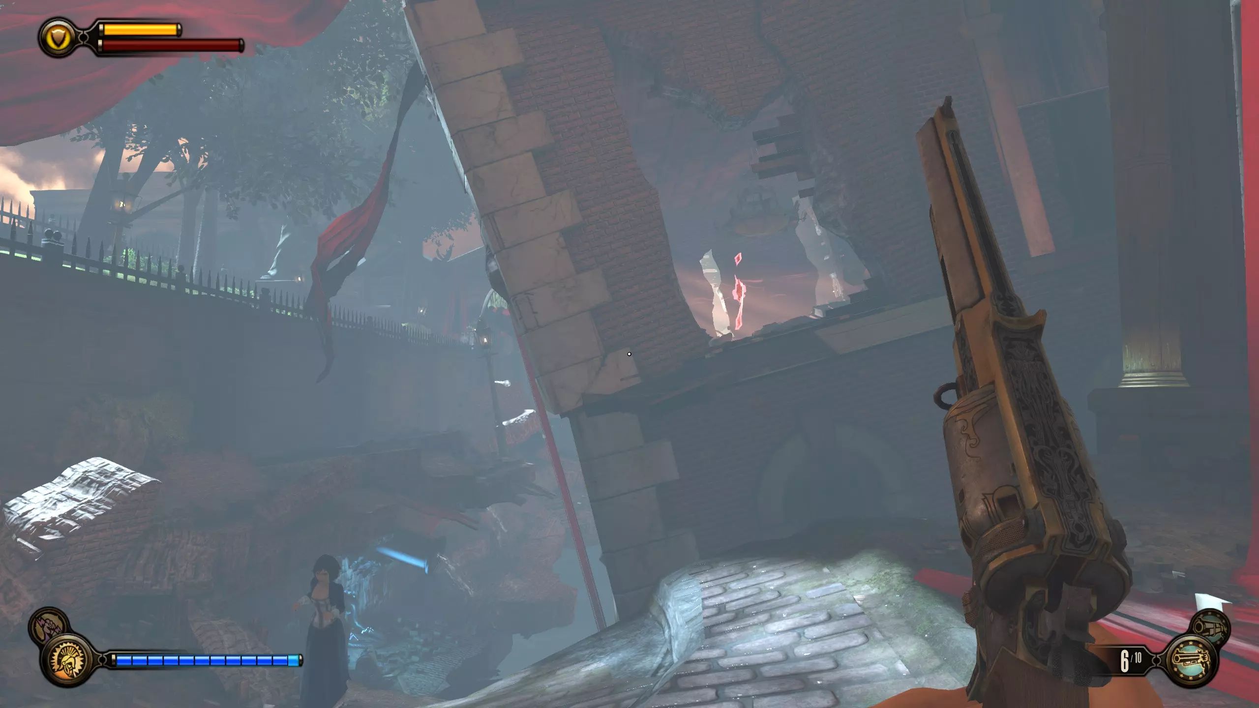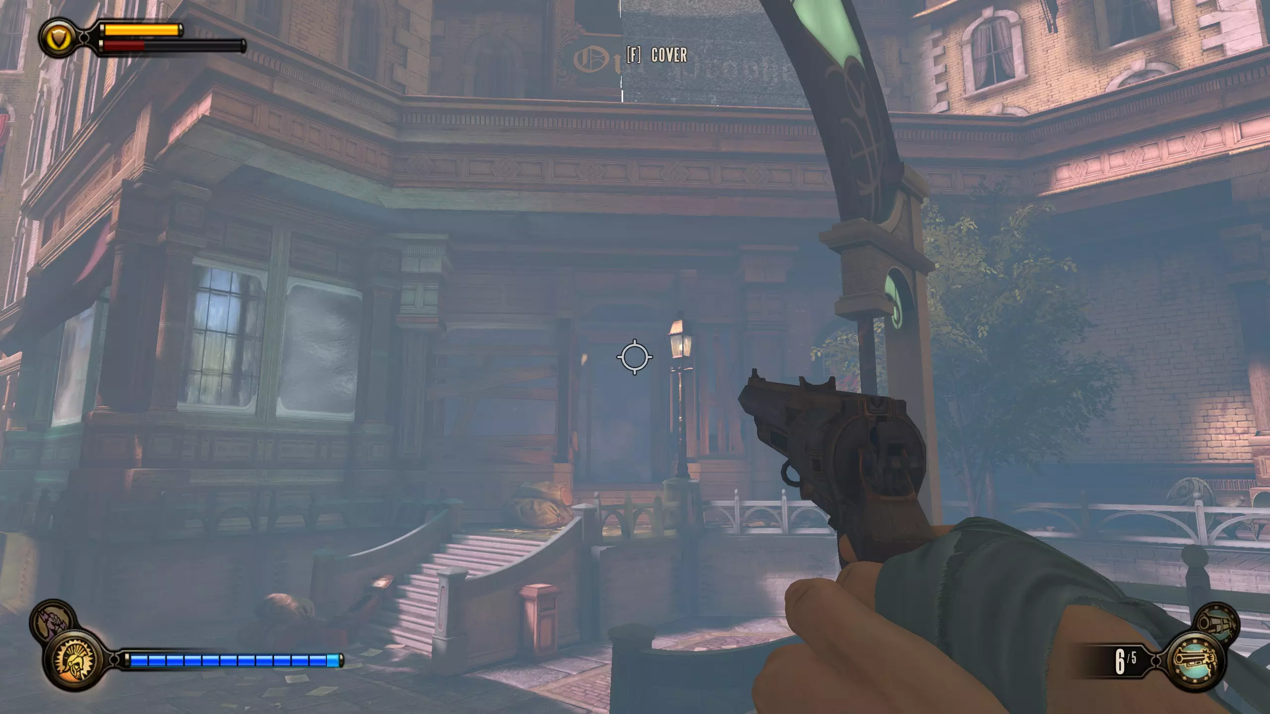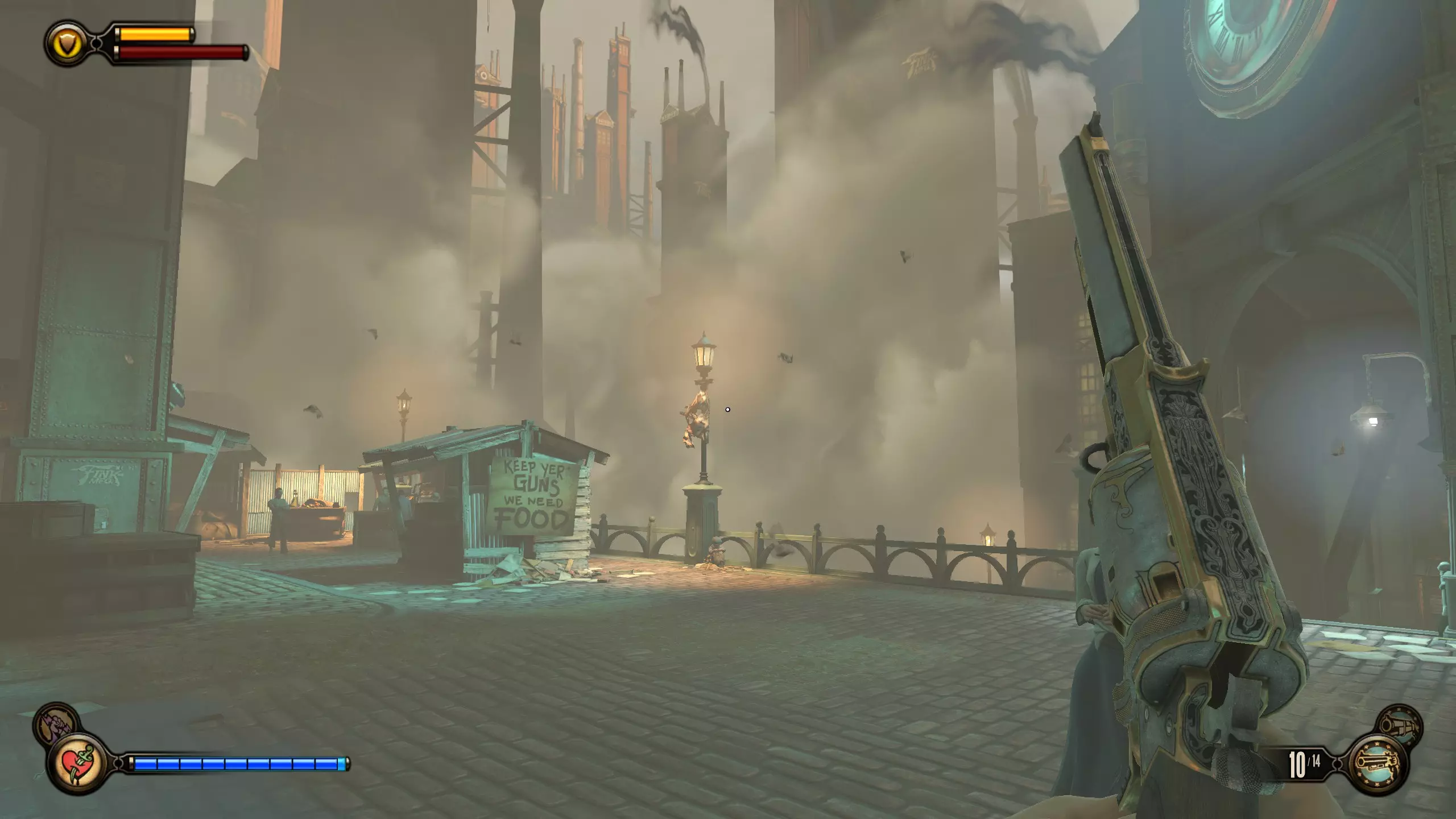 望远镜#6 在贫民窟区域前进,直到看到“有罪劳工煽动者”标识。走到时钟下方,向左上方看。阳台处会有一个货运挂钩和望远镜。