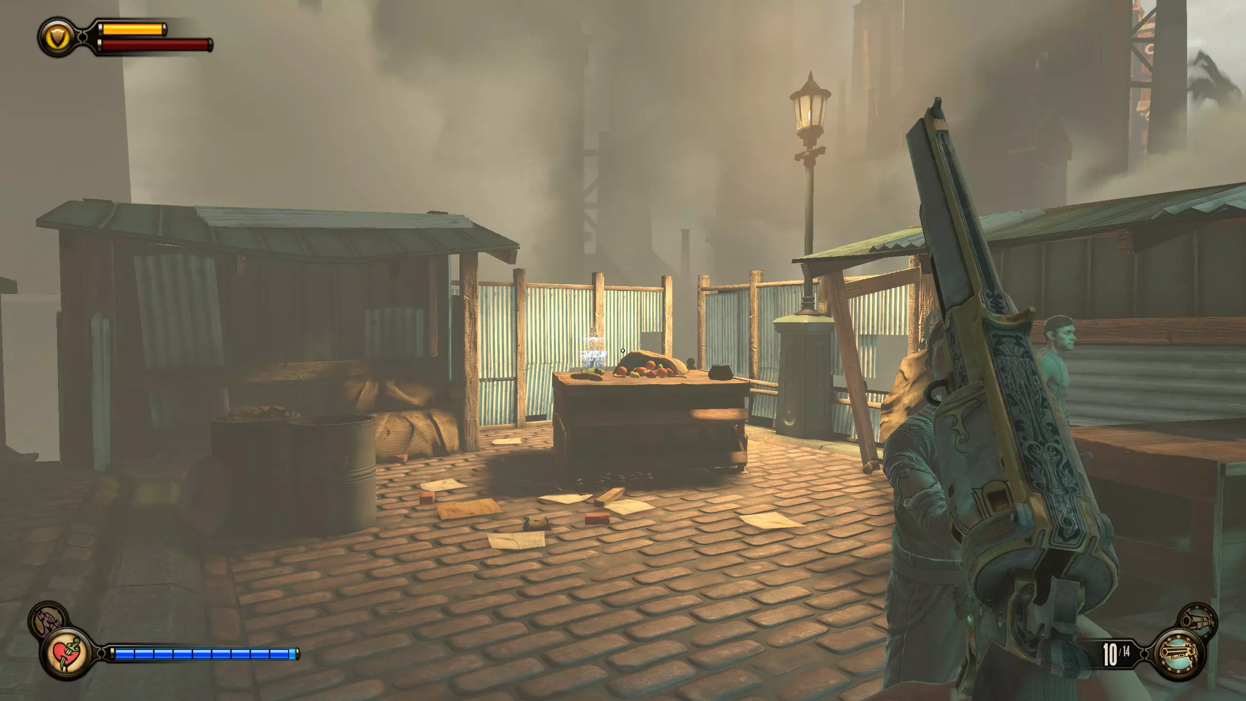 活动电影放映机13号和语音留声机26号 继续前进,直到遭遇一群敌人和一只乌鸦敌人。完成战斗后,前往右侧带有大型【TICKETS】标识的建筑。在建筑一层楼梯左侧的地面上可以找到活动电影放映机。现在走上楼梯,在栏杆旁会有一件武器、盐以及语音留声机。