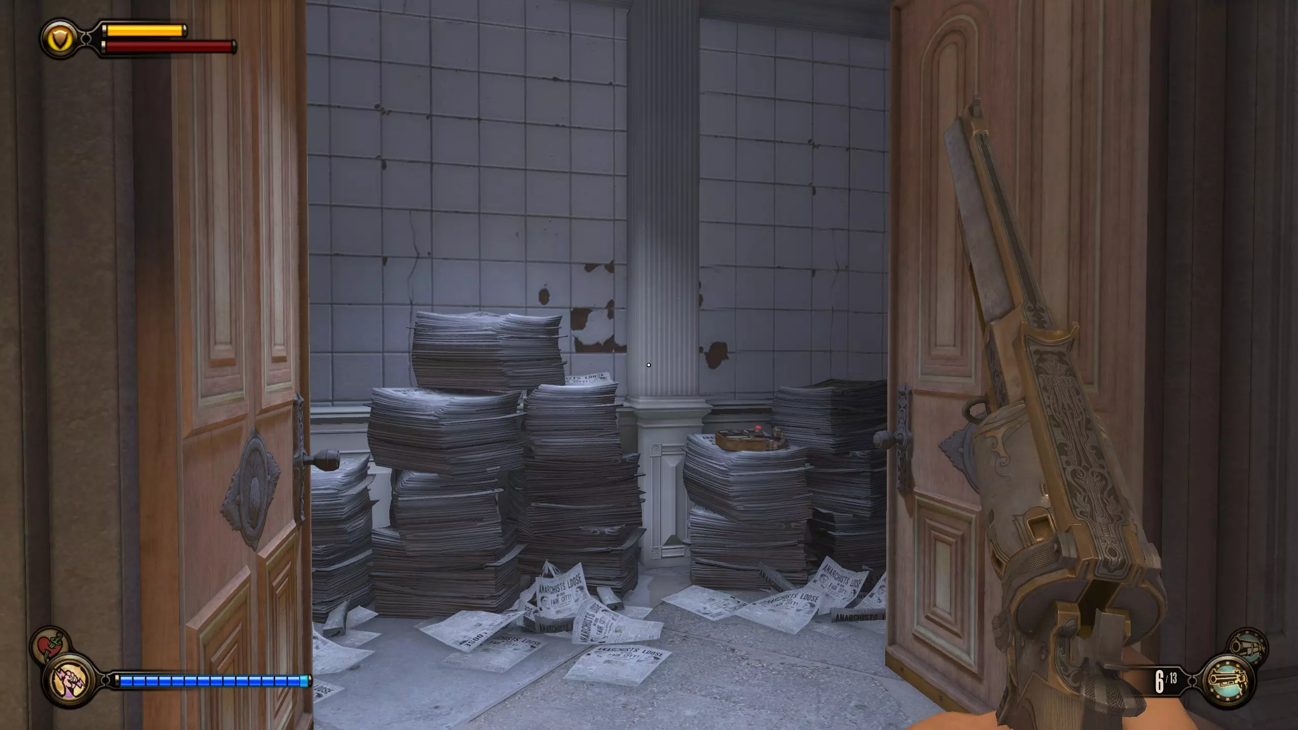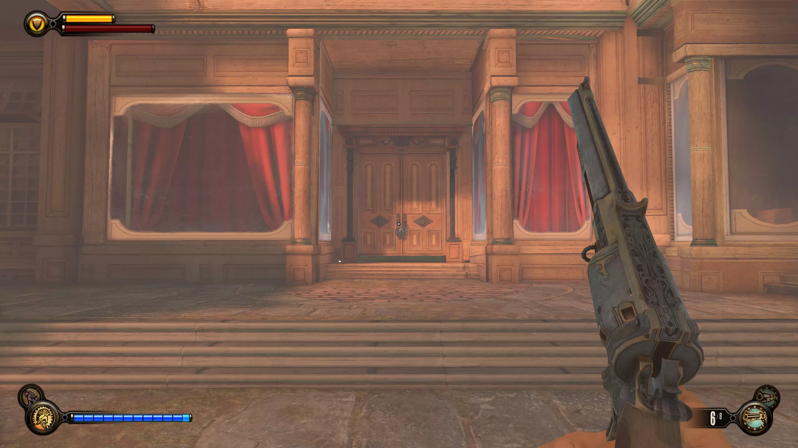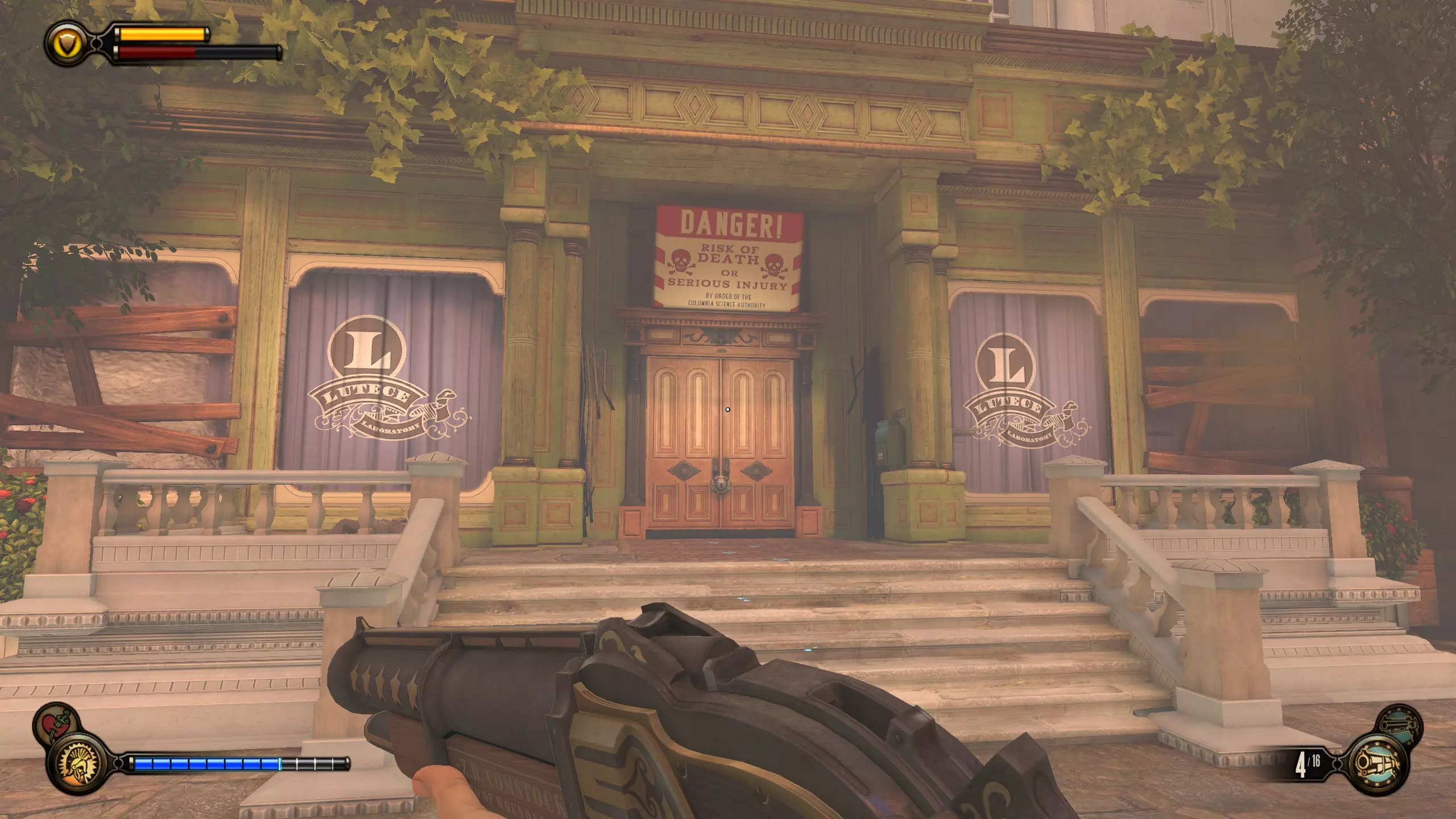 语音日记#79和#80 杀死康斯托克后,走上第一段楼梯。会有两扇门,分别通向两个房间,每个房间各有一个语音日记。这是基础游戏中最后的语音日记和收集品。现在你应该已获得全部三个收集品成就。