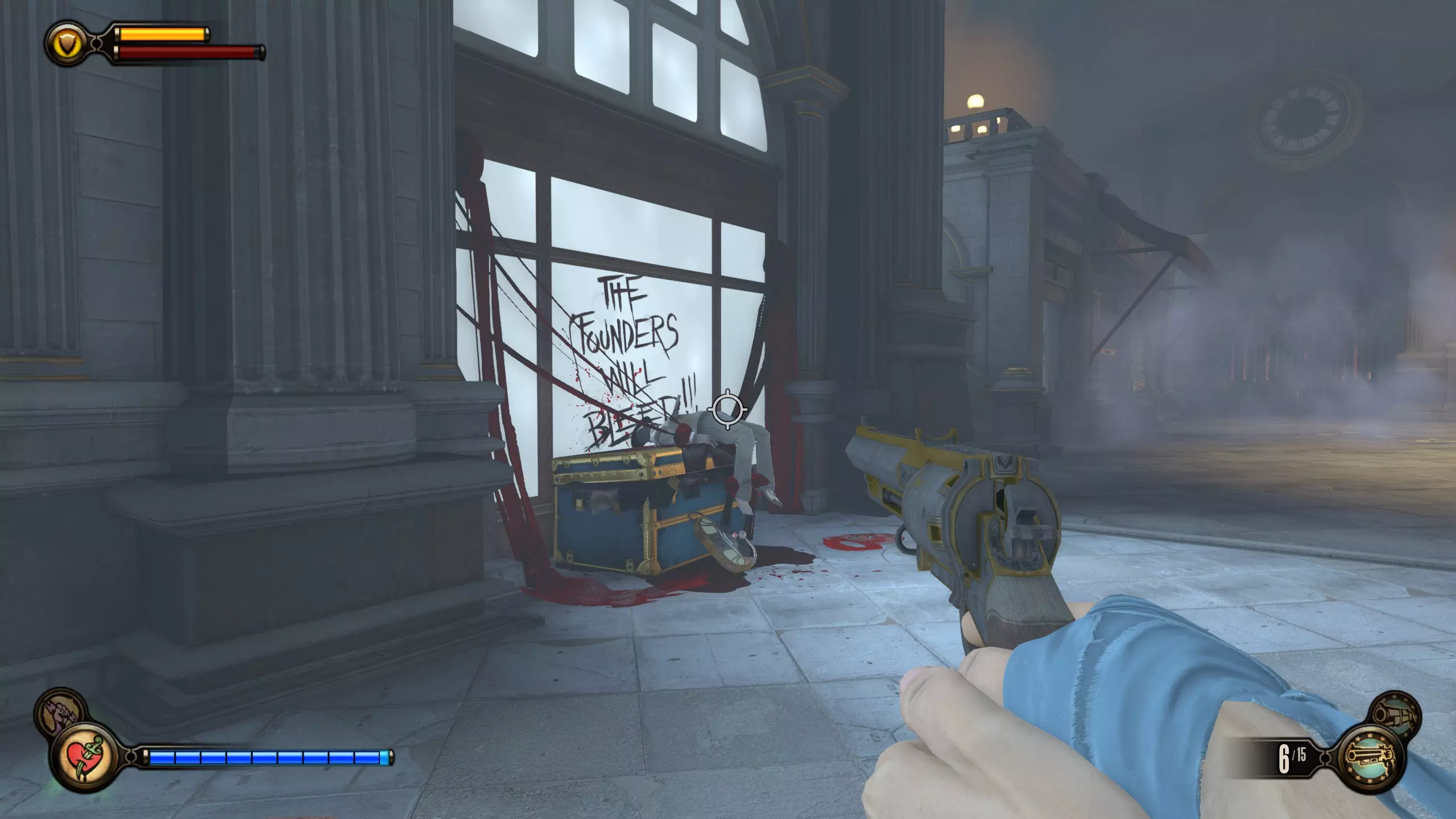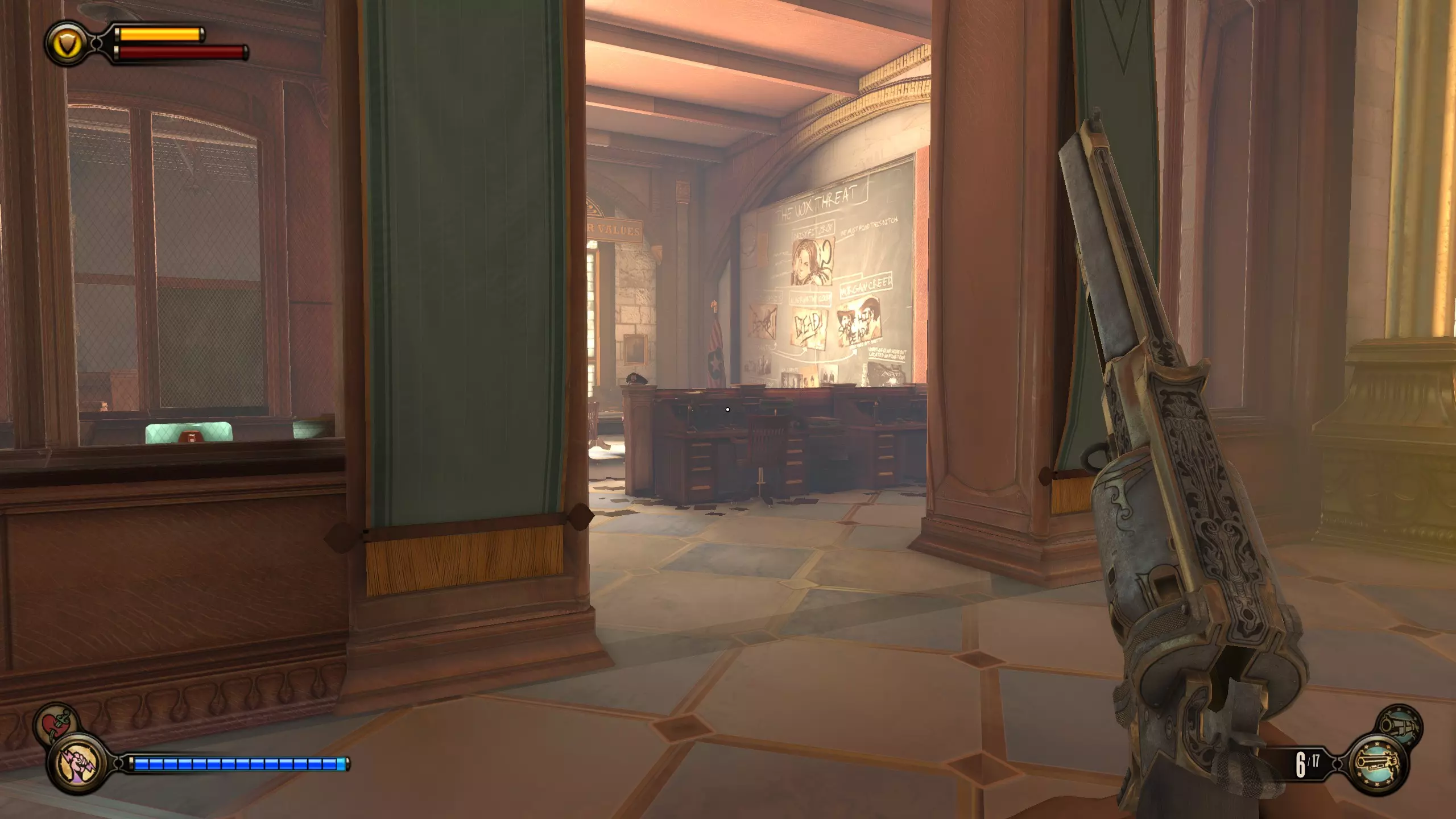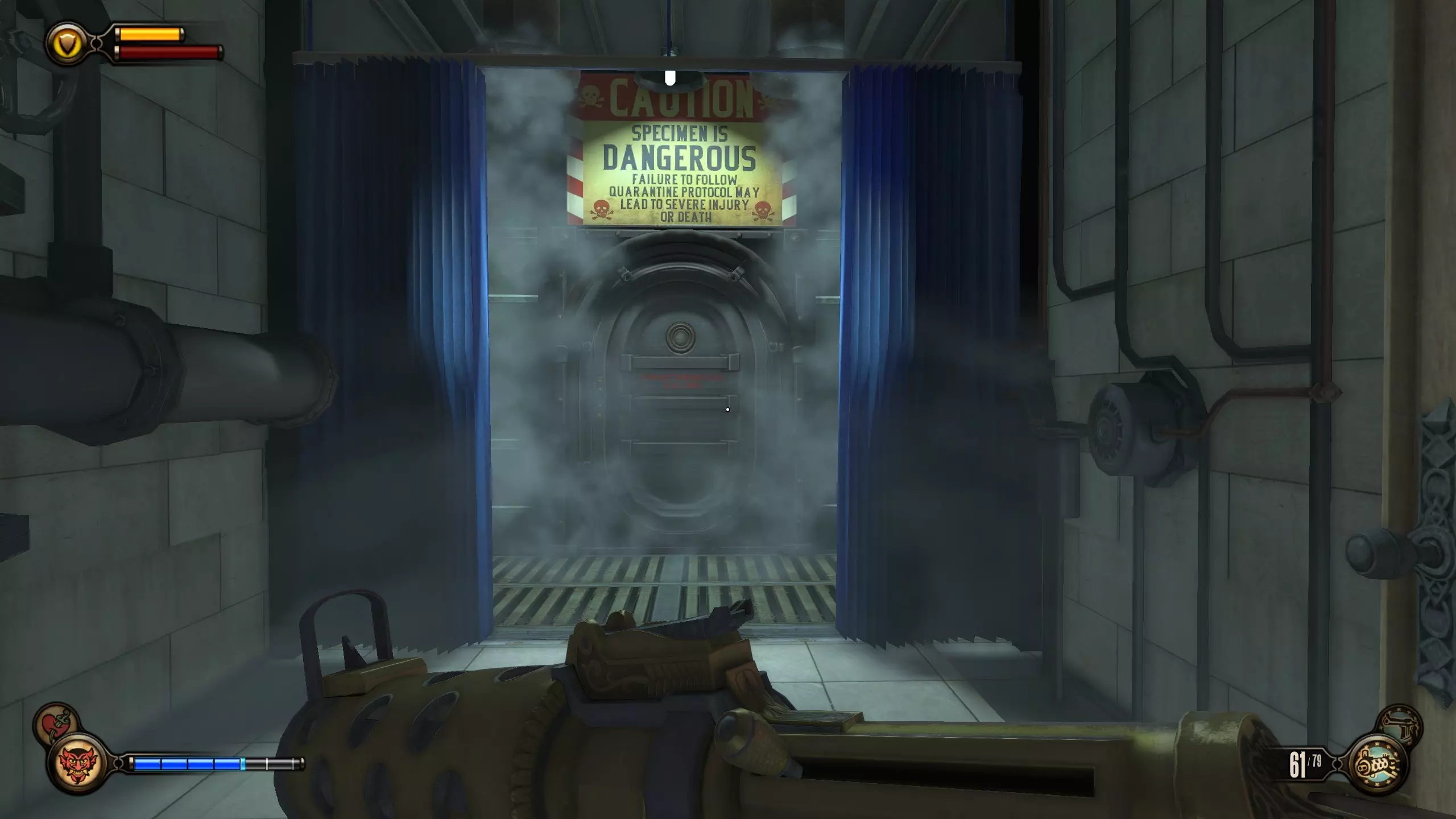 语音日记#79和#80 杀死康斯托克后,走上第一段楼梯。会有两扇门,分别通向两个房间,每个房间各有一个语音日记。这是基础游戏中最后的语音日记和收集品。现在你应该已获得全部三个收集品成就。