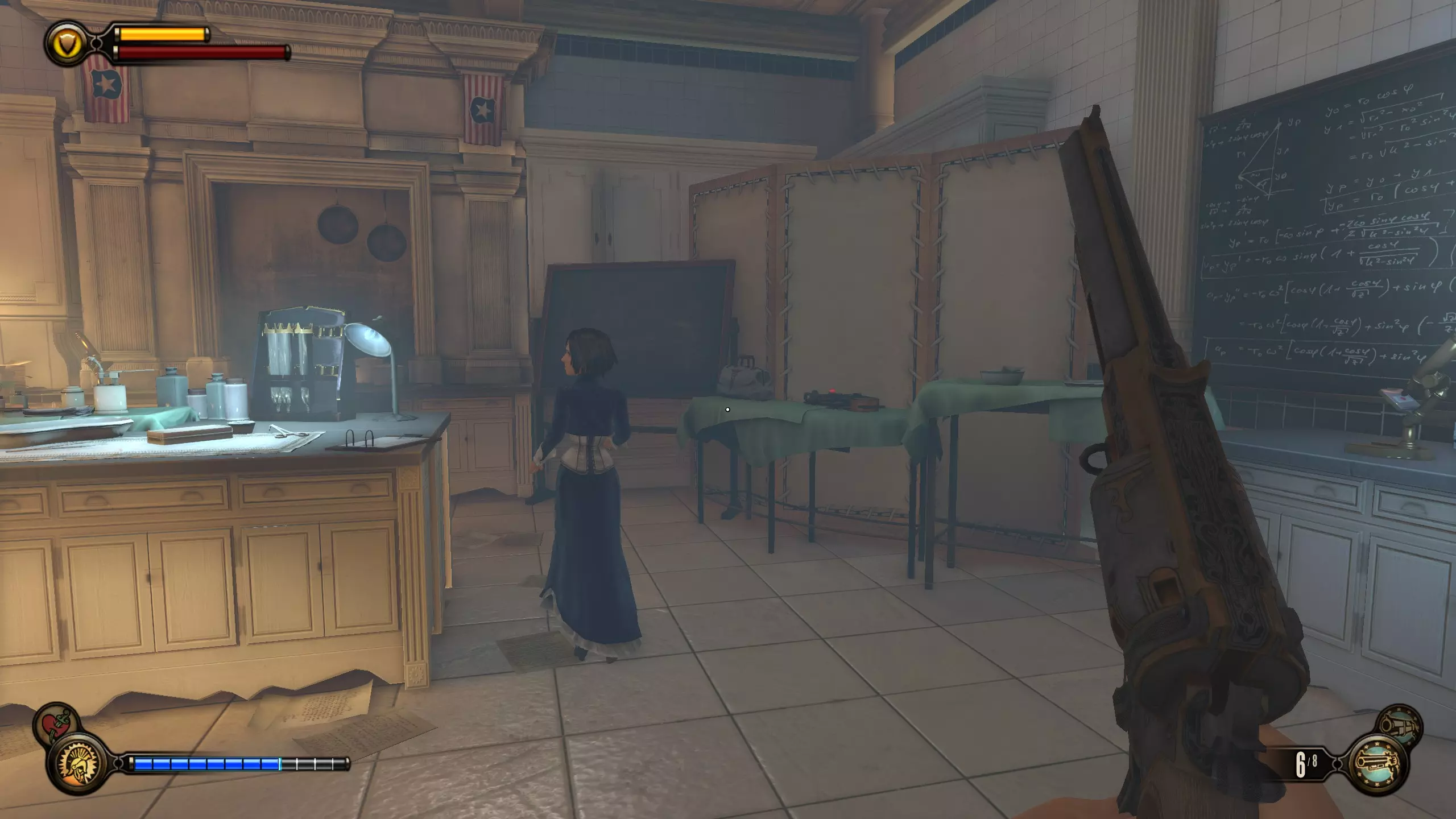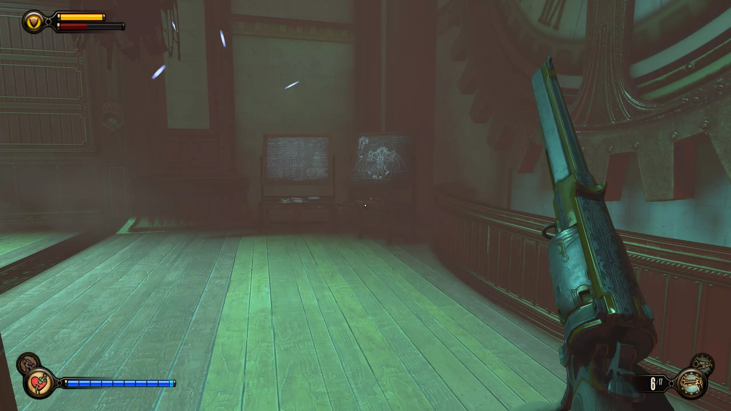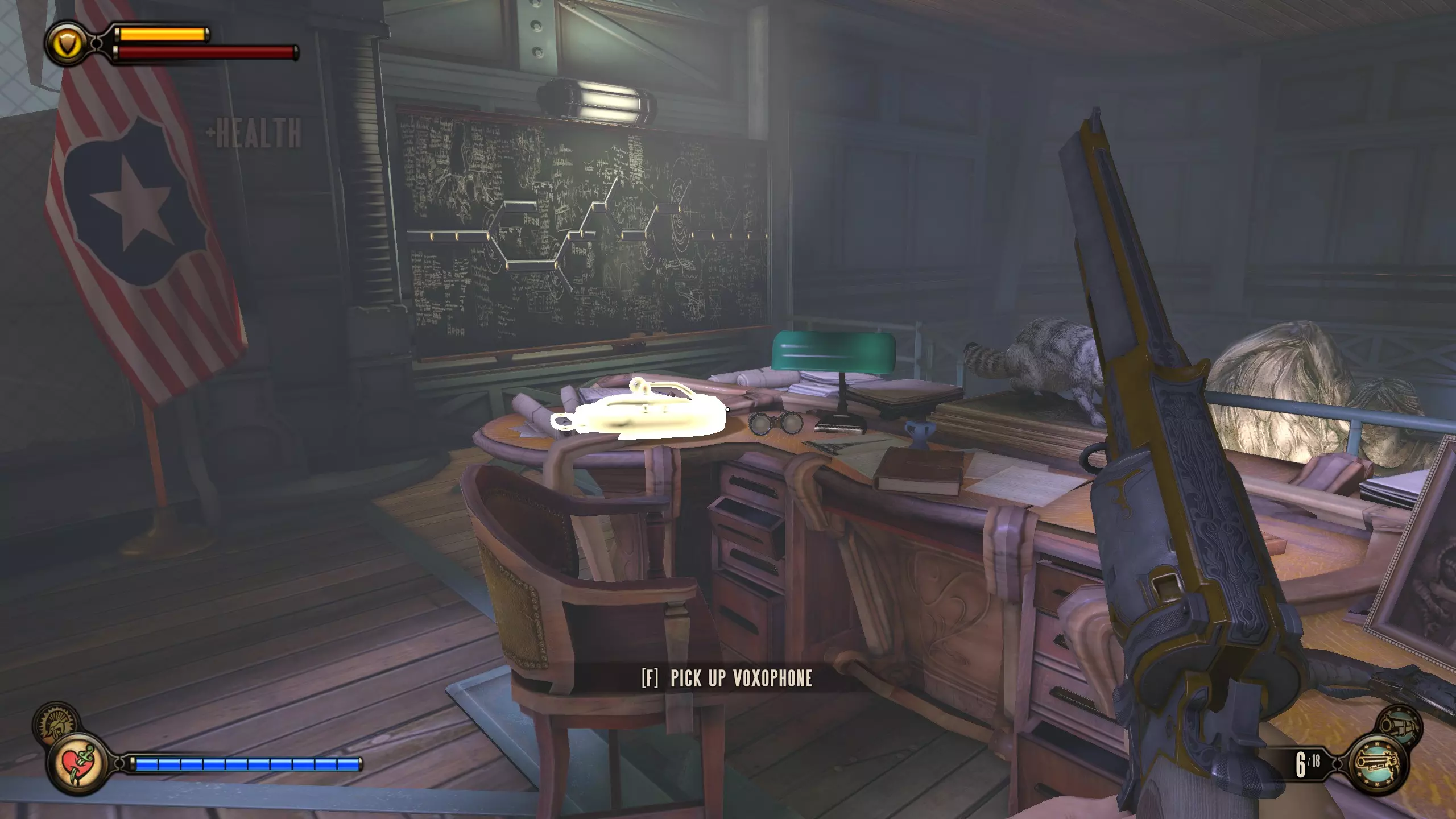 留声机15号和灌注5号 继续前进,直到你看到一块黑板。留声机会在桌子上。然后,桌子右侧后方有一个灌注。