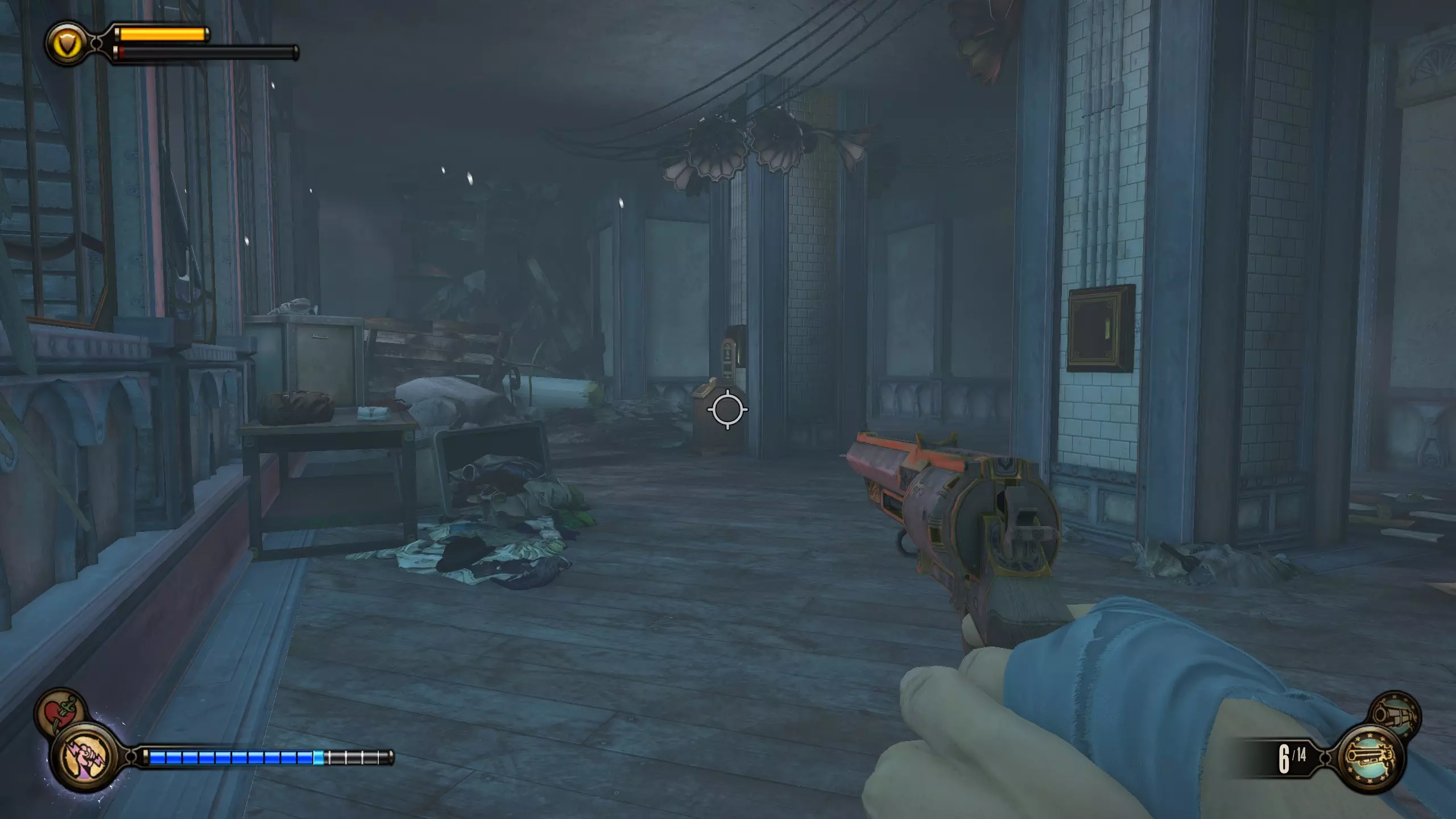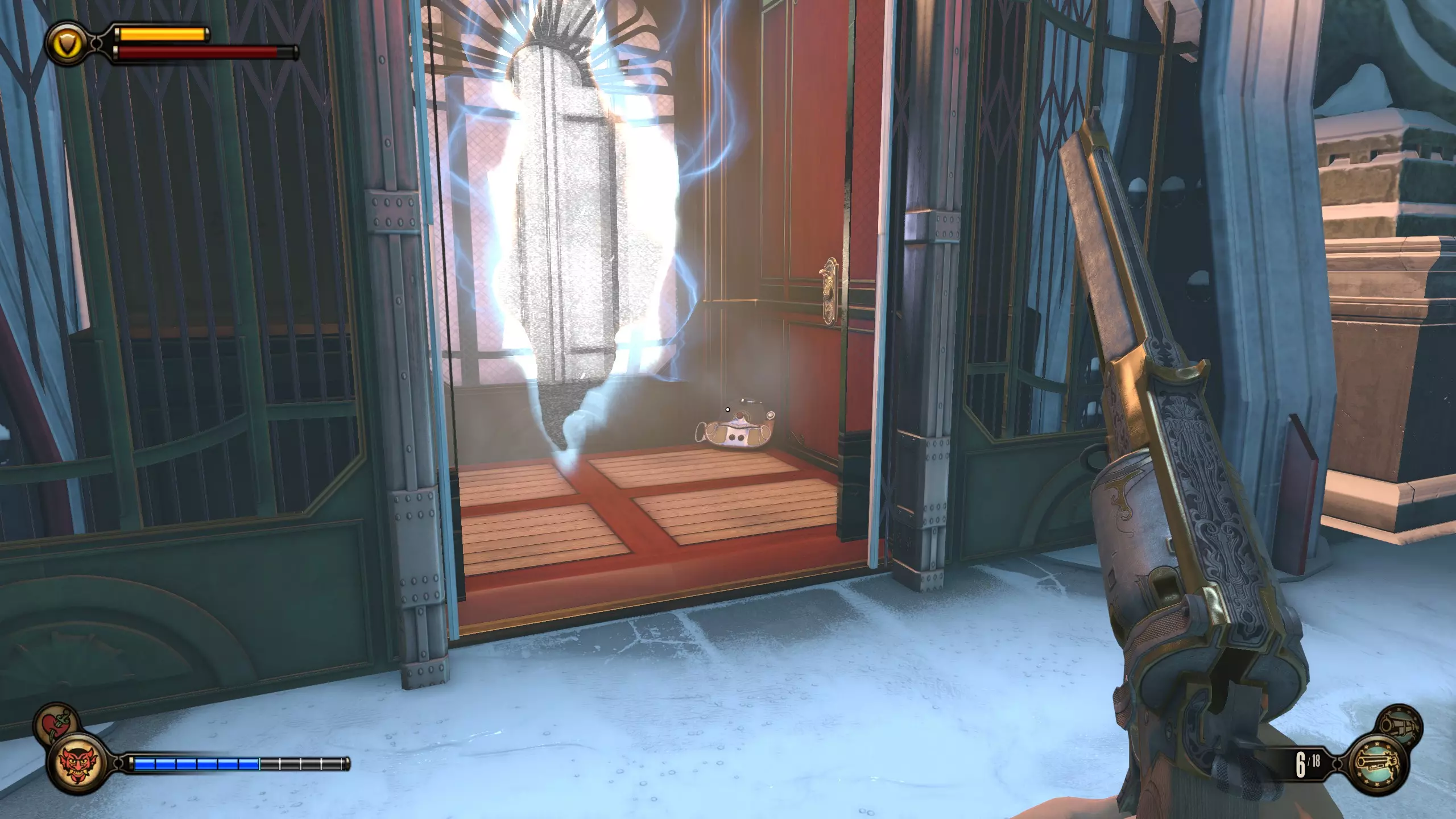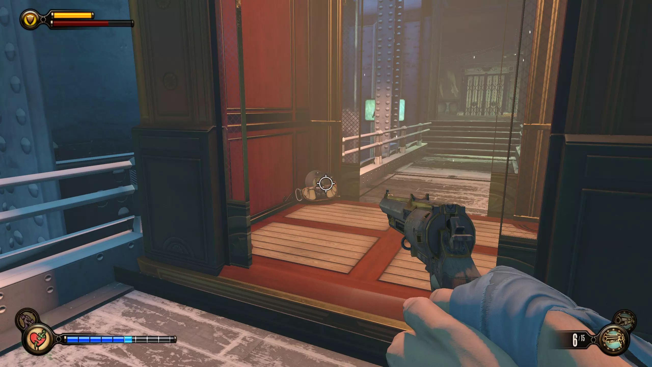 留声机#35 在伊丽莎白用火车裂隙阻挡你后,她会打开另一个裂隙,随后被抓走。向左转,会有一张桌子,上面放着一台留声机。