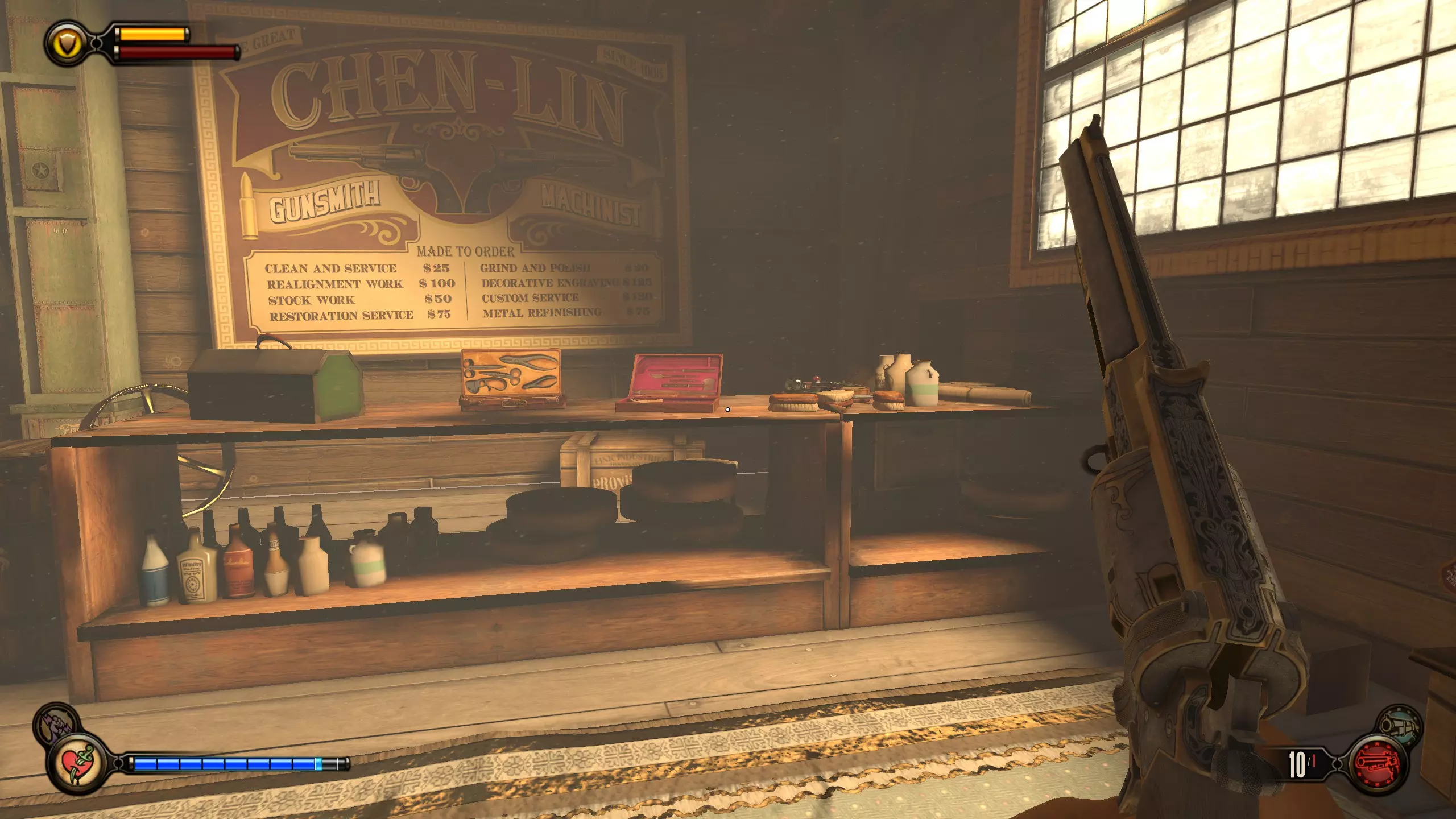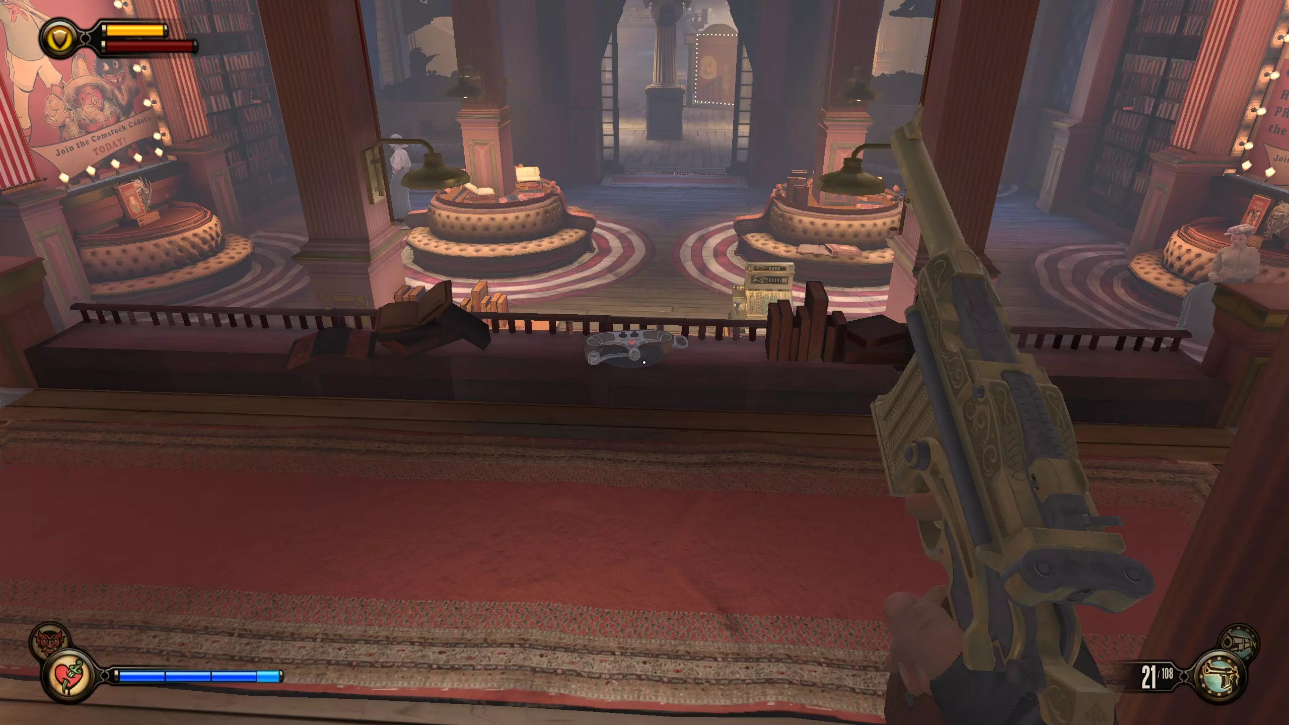 留声机#9 进入建筑并看到这座雕像后,向左走,留声机就在吧台处。