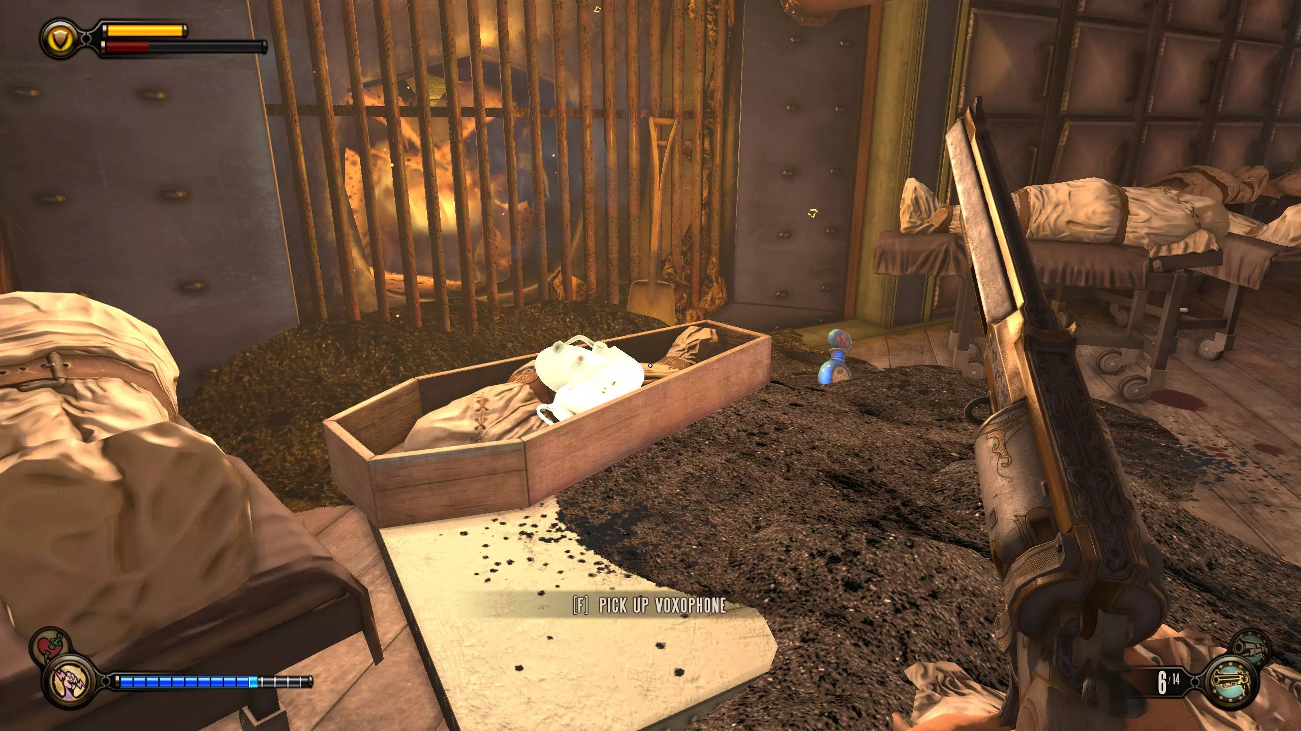 留声机#71 进入中间有裂缝的房间,左侧有一个熔炉。炉火旁的棺材里会有一台留声机。