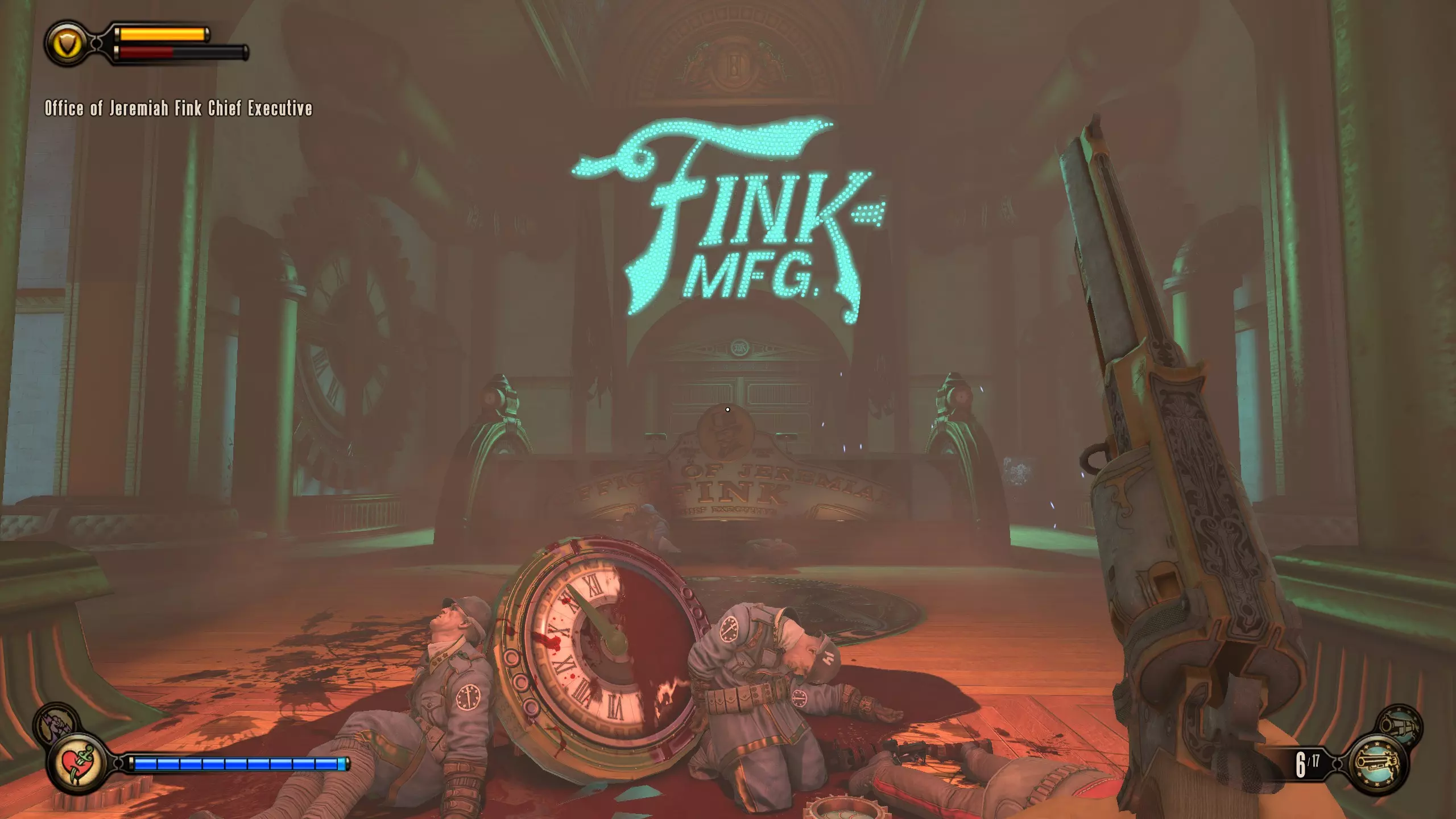 留声机42号和灌注14号 现在你已经拿到密码本,站到带有讲台的广告牌下方。向左走,会有一扇锁着的门,里面有钟表。走向墙上的红色文字,然后在钟表被高亮时转动它。门内就是留声机和灌注。