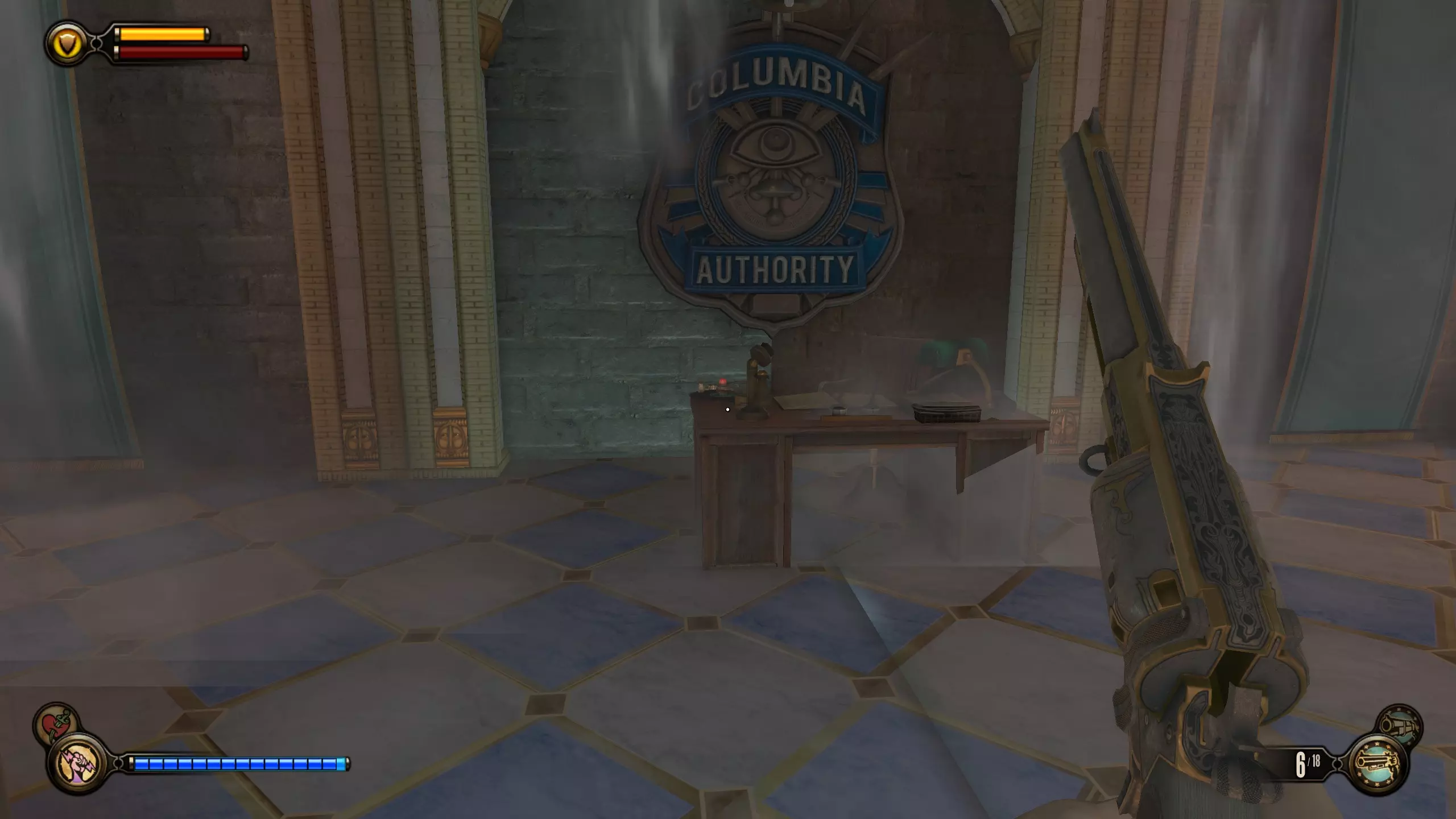 留声机#20 在遭遇突袭并与前台店员交谈后,大门会开启,更多敌人将追击你。进入大门后向右转,穿过几扇门,留声机就在桌子上。
