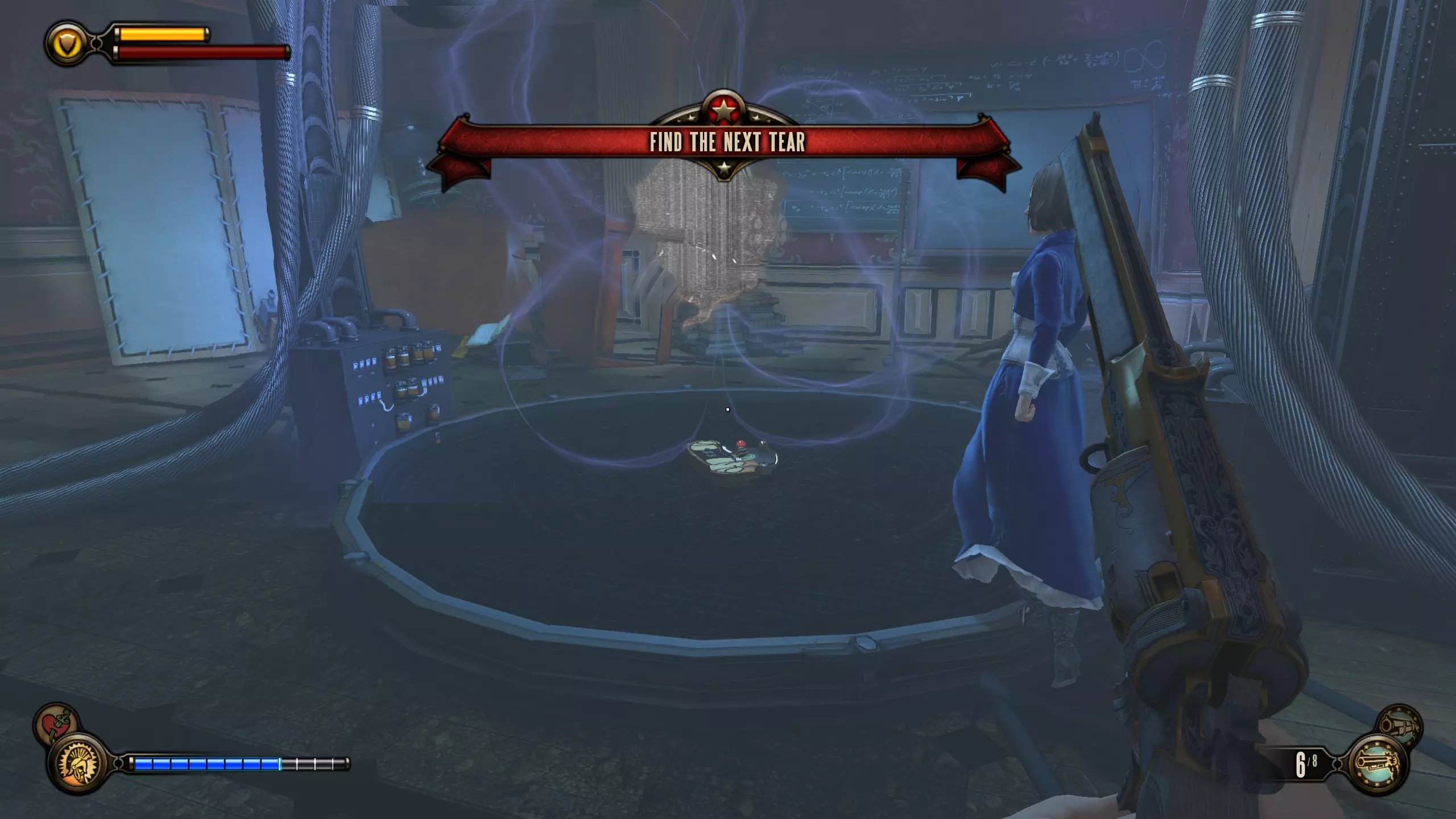 望远镜 #8 在与黛西·菲茨罗伊战斗的竞技场中,特斯拉线圈裂隙后方有一架望远镜。