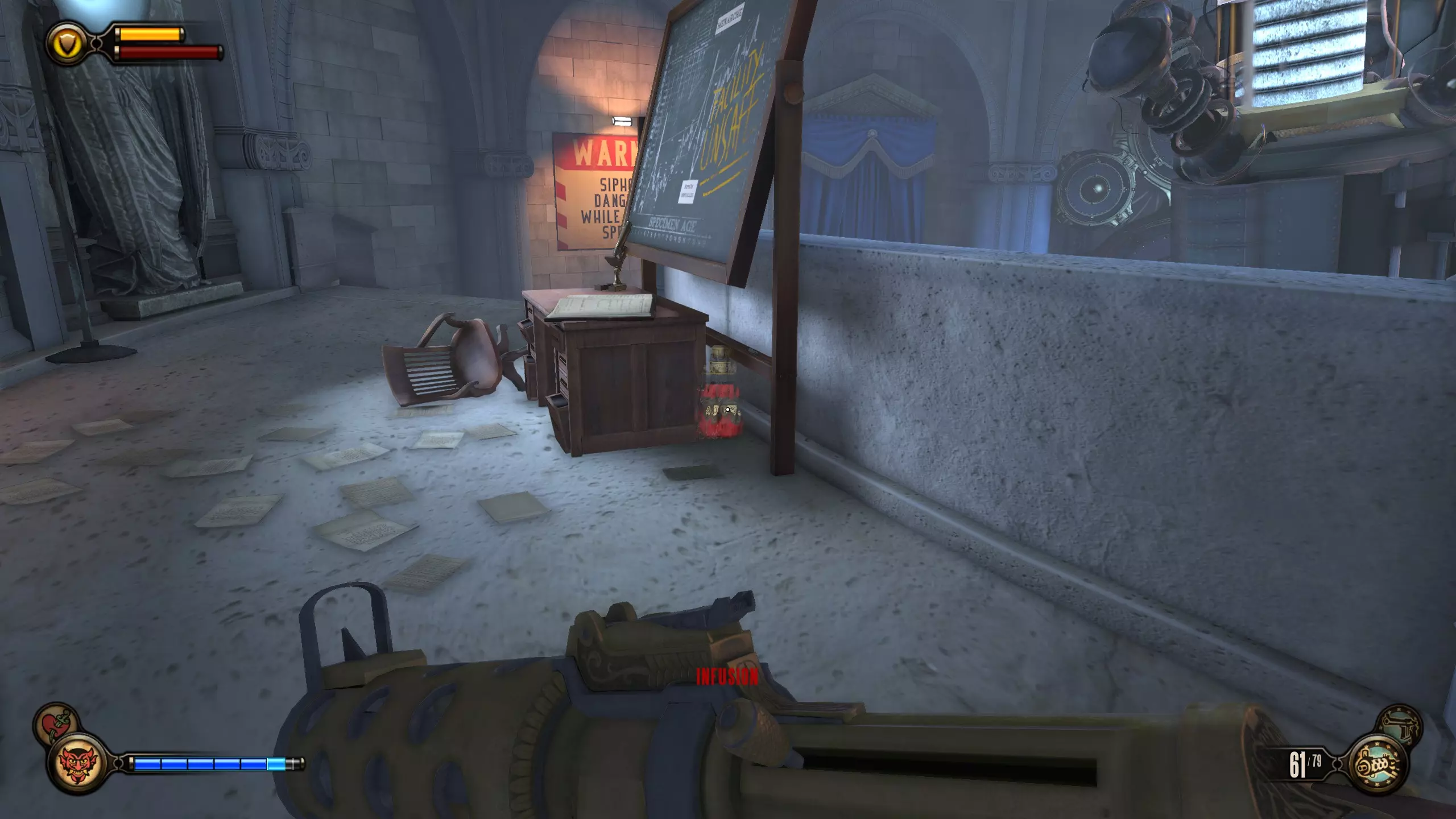 注入物 #13 查看之前的活动电影放映机后左转,在商人右侧会有一扇门。进入这个房间,柜台上有一个注入物。