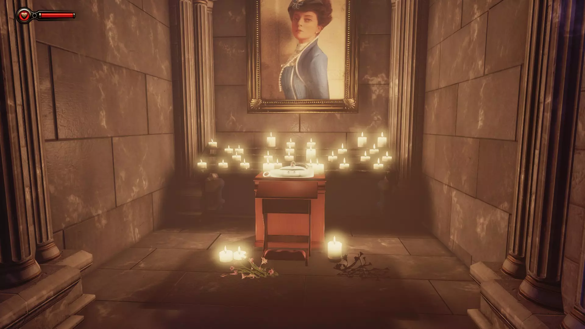 【录音器 #61】抵达康斯托克宅邸,康斯托克夫人雕像右侧有一个录音器。