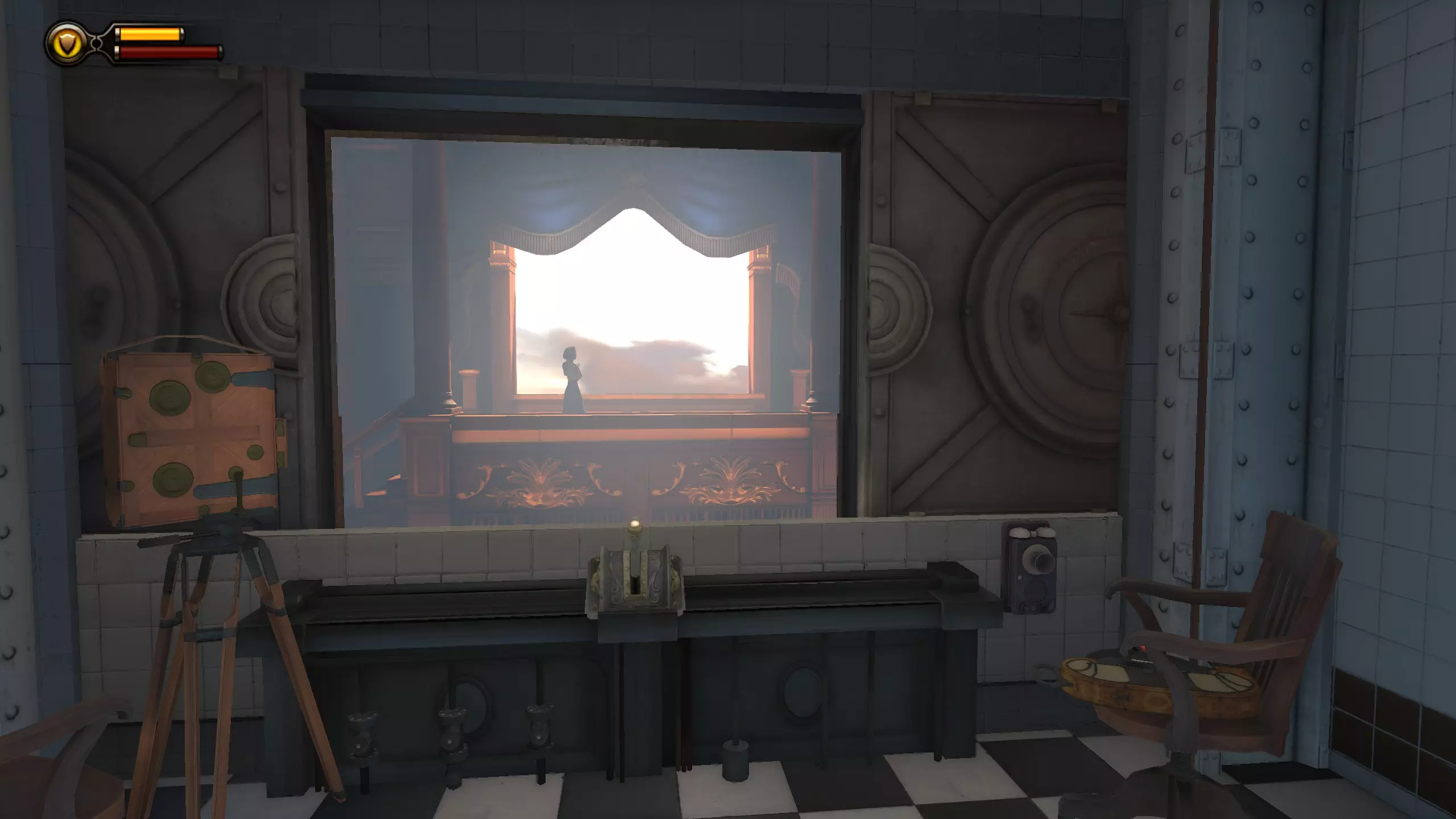 望远镜#1 在布克举起卡片并收到电报后,向左看就能找到望远镜。