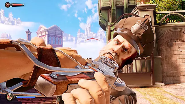 使用空中钩爪处决20名敌人。 说明:不要误解这个成就,我们不需要用空中钩爪(近战攻击)杀死20名敌人,而是要处决他们。正如游戏中我们在哥伦比亚集市首次遭遇警察时所解释的那样,当敌人即将死亡时,其生命值上方会出现一个小骷髅头,这表明可以处决该敌人。要执行处决,默认情况下我们需要按住“V”键(用于进行近战攻击的按键),只要敌人生命值条上方出现如前所述的小骷髅头符号,Boker就会自动执行处决。