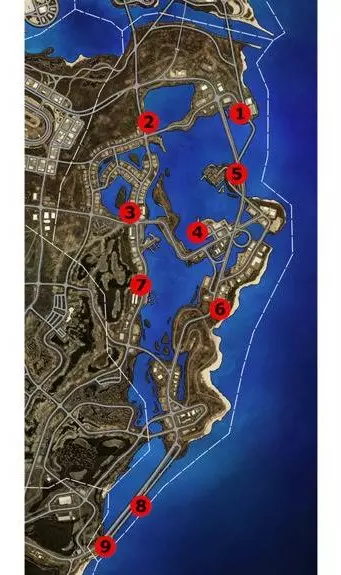 - 8个街头艺术 - 5个广告牌 - 5个火烈鸟 - 3次跳远 - 2个测速点 - 2个漂移区域 完成后的奖励: - 100%区域奖励:Hand + Keep Out角色,2个胶带贴纸 - 100%收藏品奖励:青色波浪底盘灯 - 100%活动奖励:珊瑚色烟雾